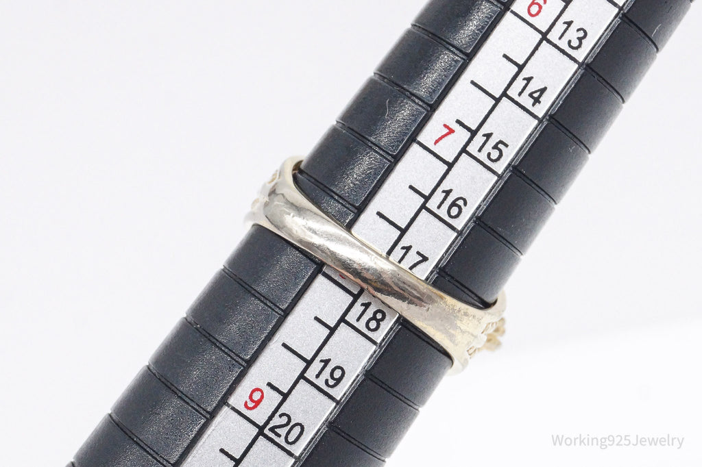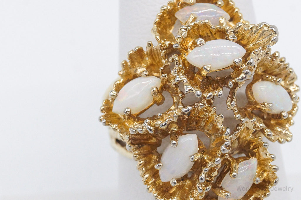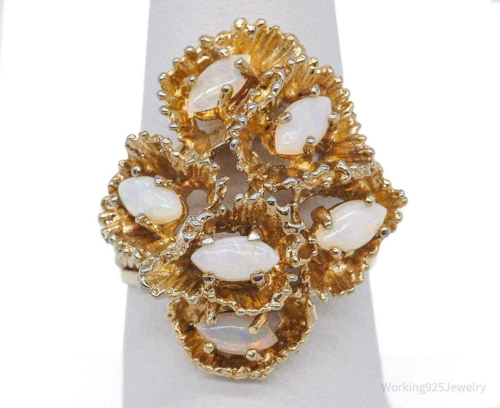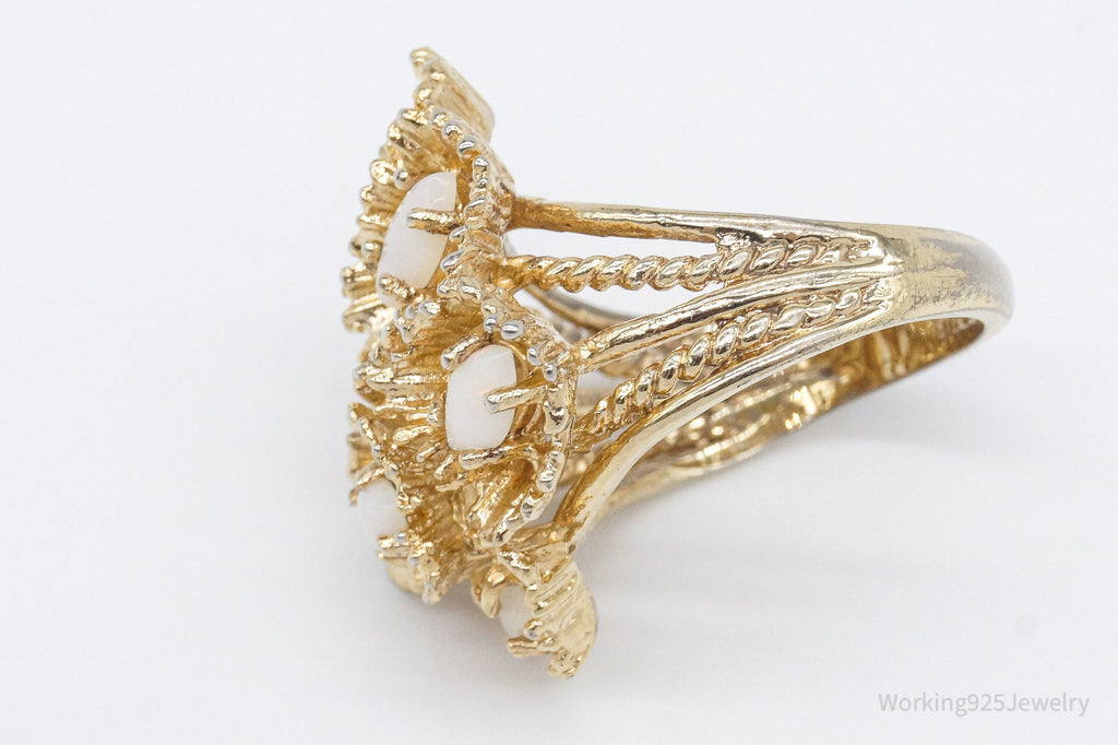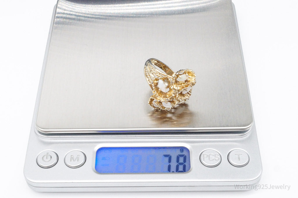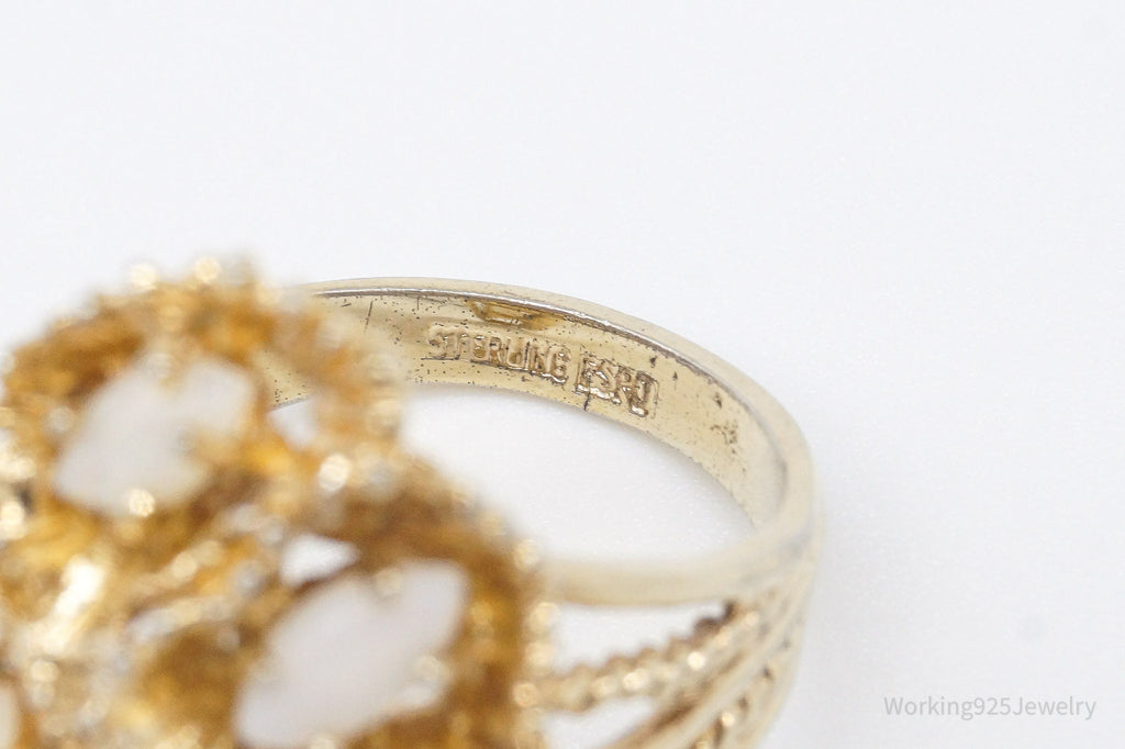 Vintage Designer ESPO White Opal Gold Vermeil Sterling Silver Ring - SZ 7.75