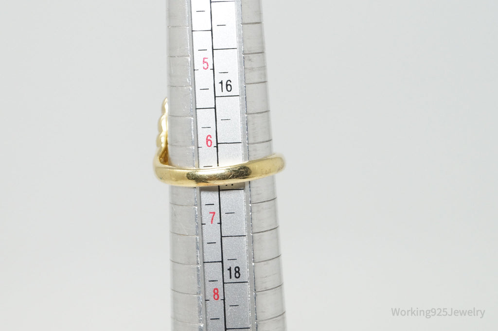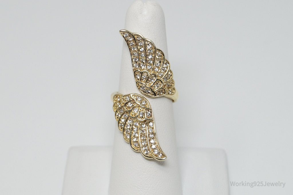 Vintage Designer GSJ CZ Gold Vermeil Wings Sterling Silver Ring - Sz 6.5
