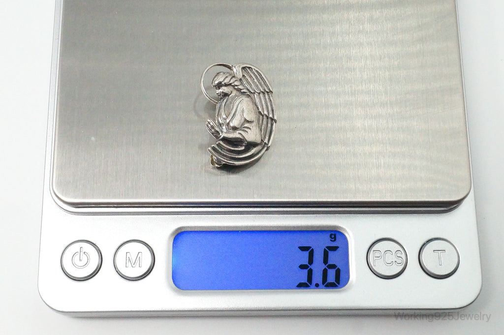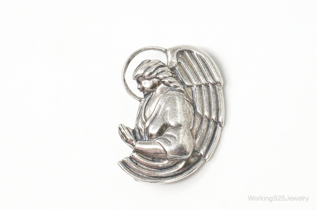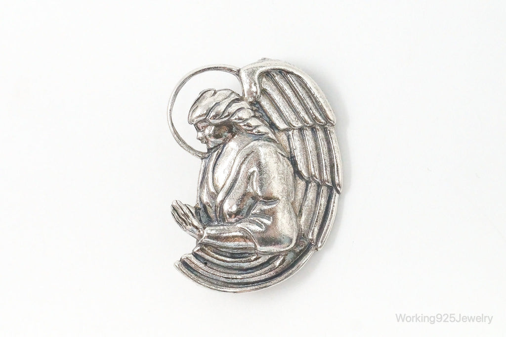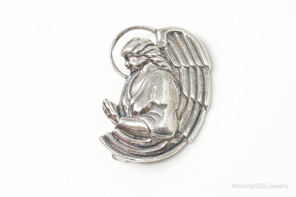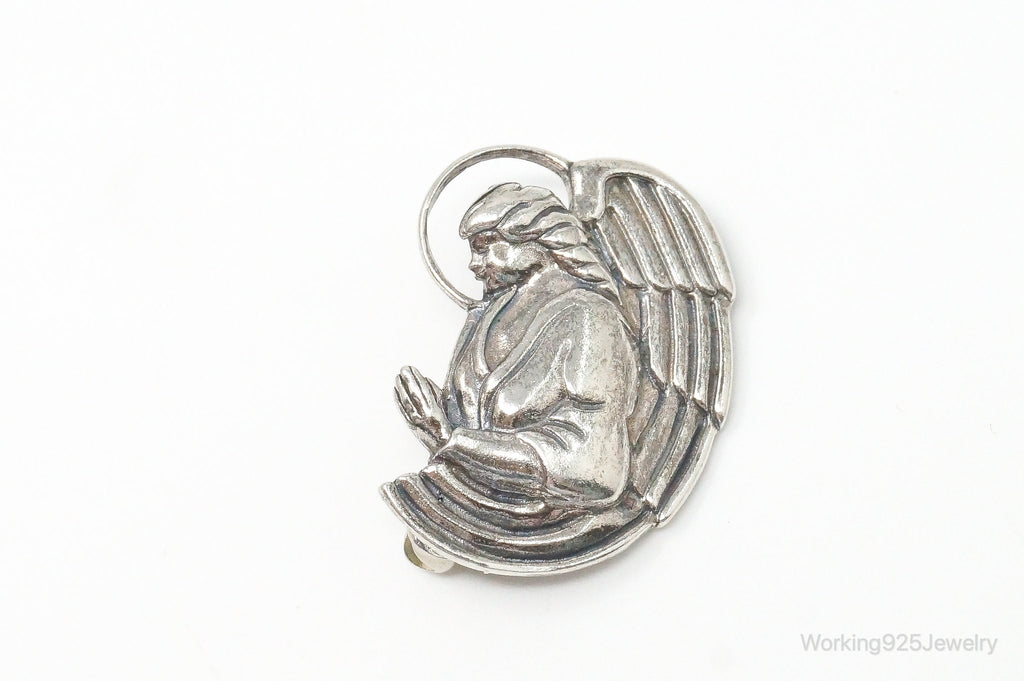 Vintage Designer Jezlaine Angel Praying Sterling Silver Brooch Pin