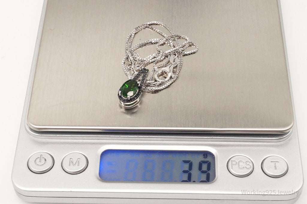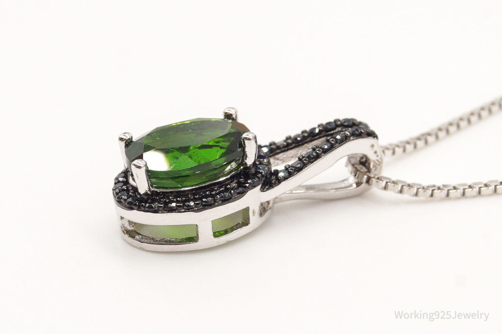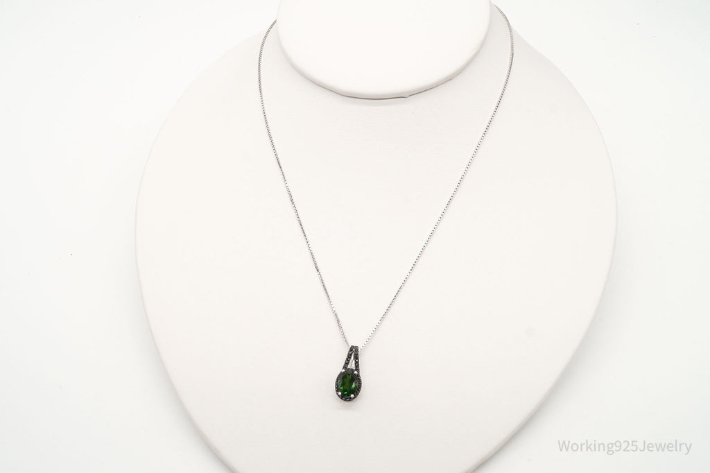 Vintage Designer JZ Emerald Black Spinel Sterling Silver Necklace