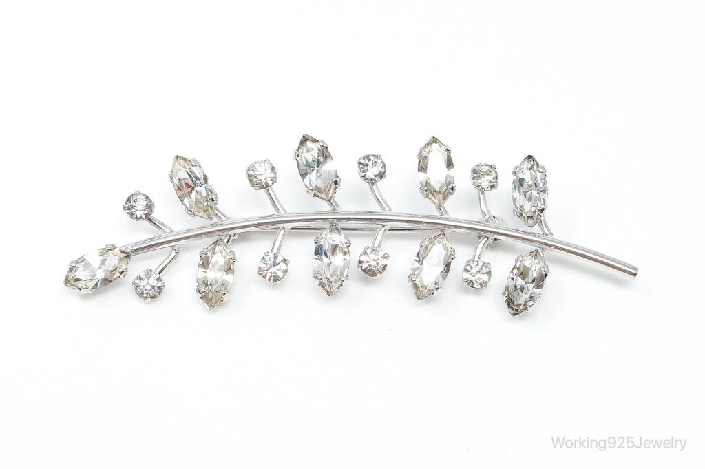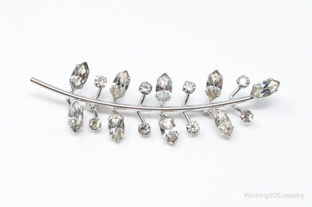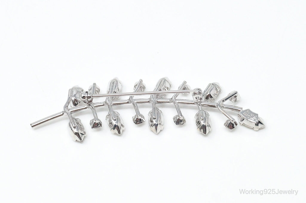 Vintage Designer Lang Rhinestone Leaf Branch Sterling Silver Brooch Pin