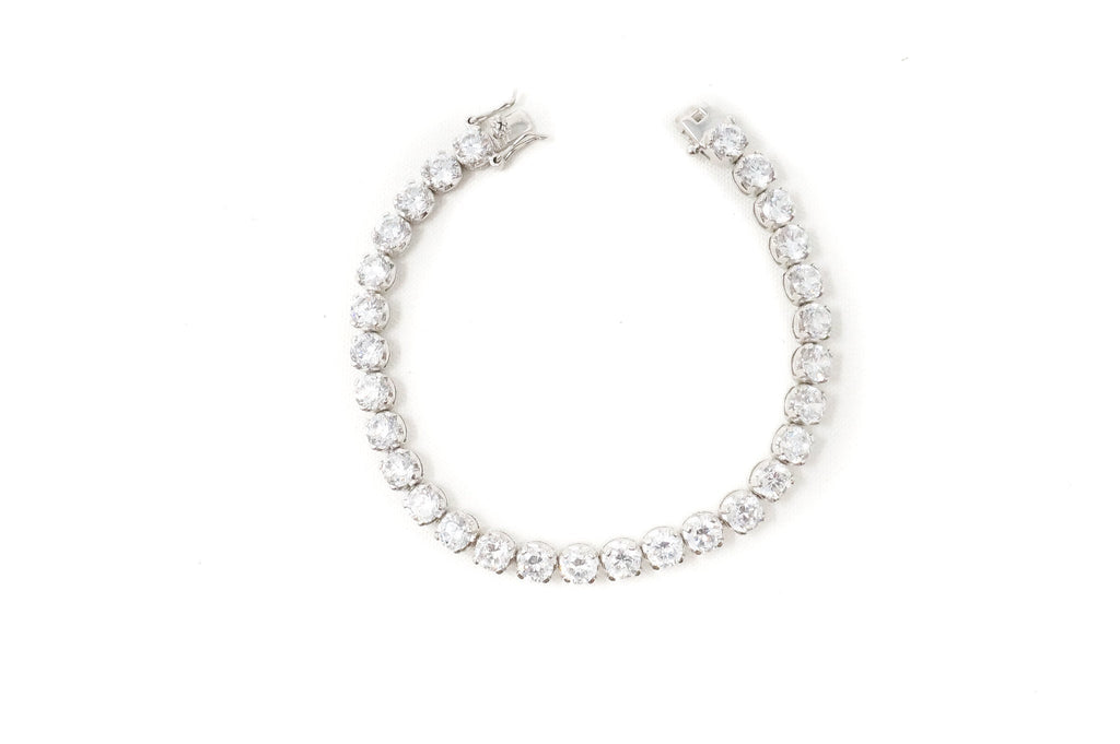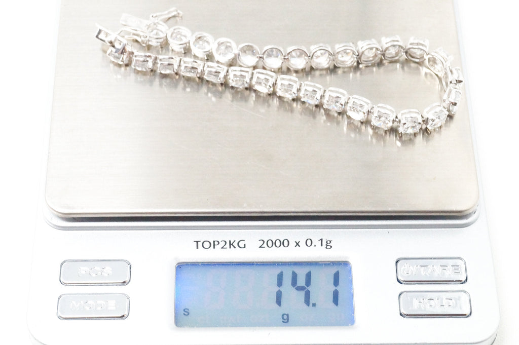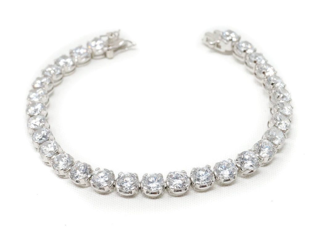 Vintage Designer Lanza Art Deco Cubic Zirconia Sterling Silver Tennis Bracelet
