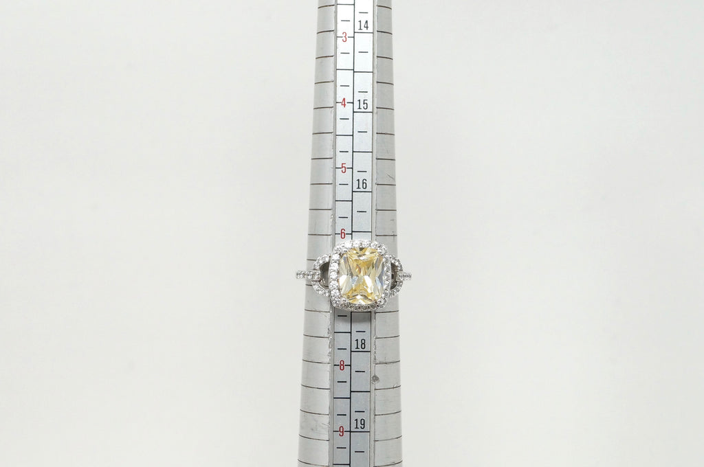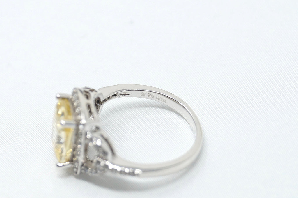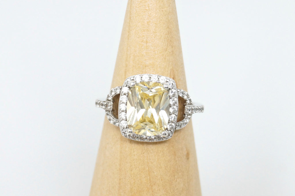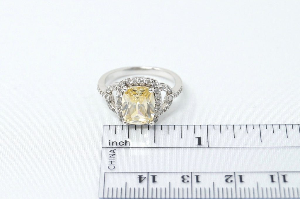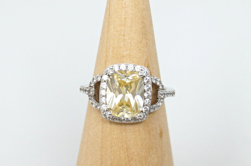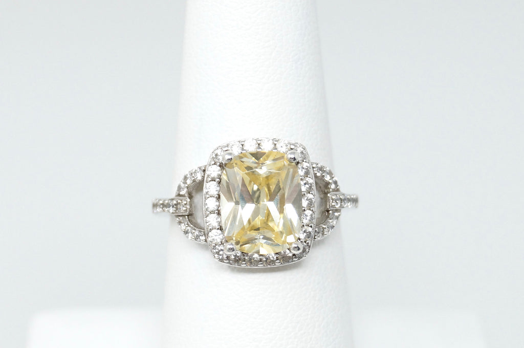 Vintage Designer Large Citrine CZ Art Deco Style Sterling Silver Ring Sz 6.75