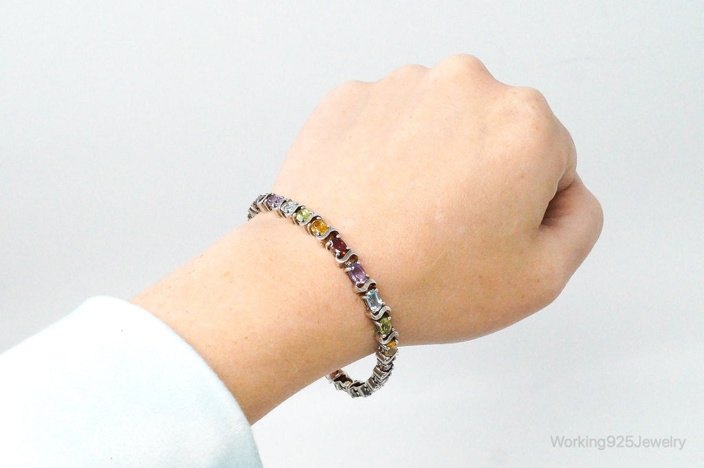 Vintage Designer Multi Gem Sterling Silver Bracelet