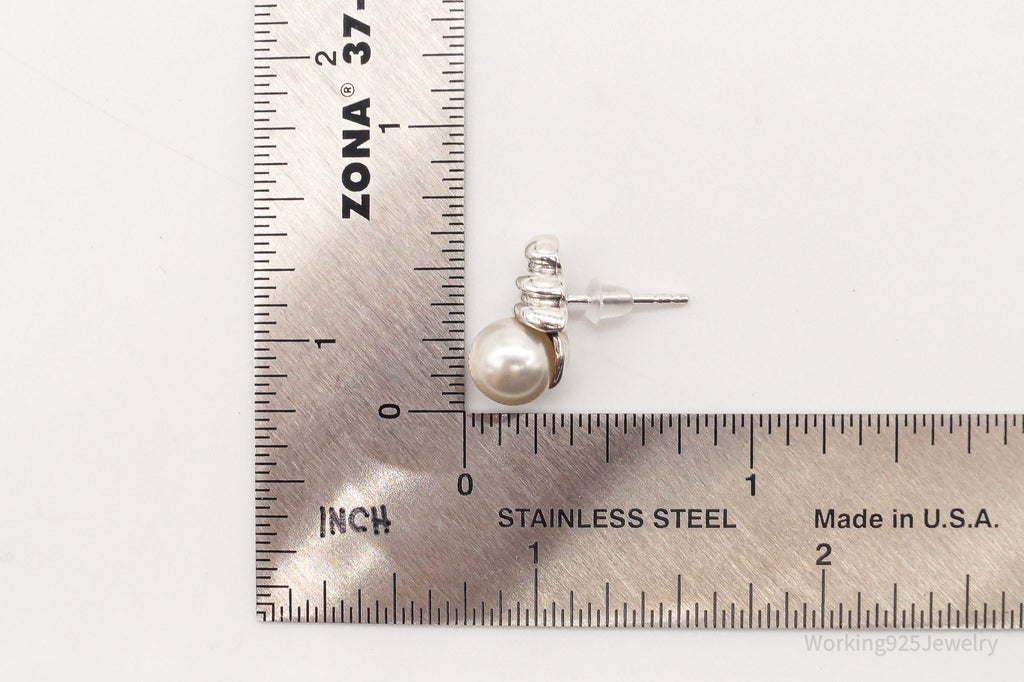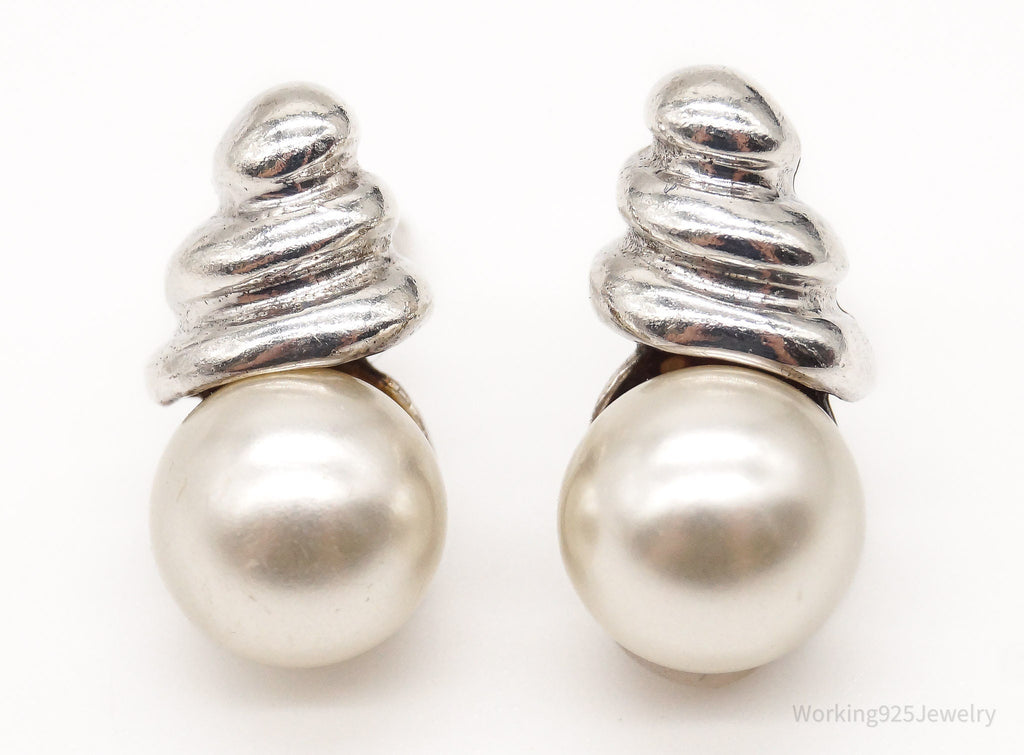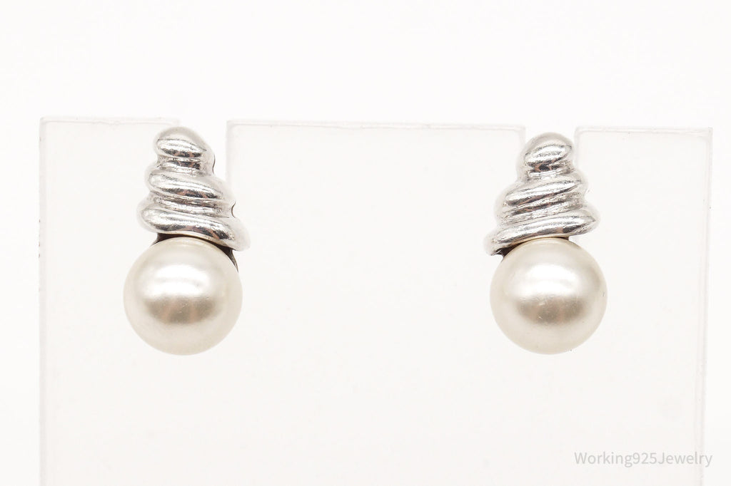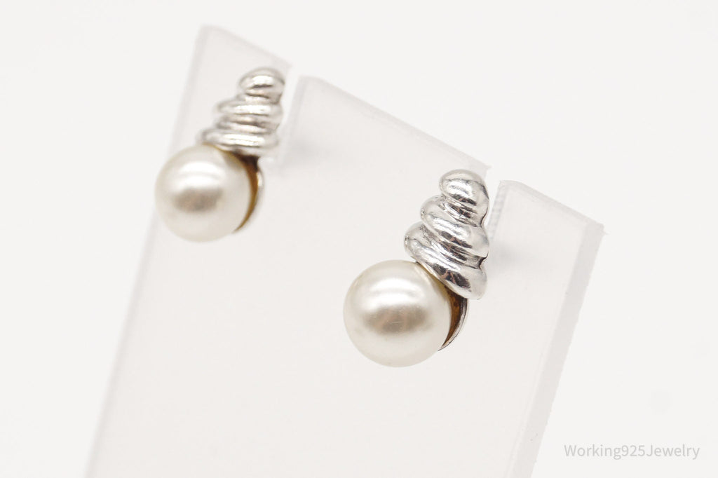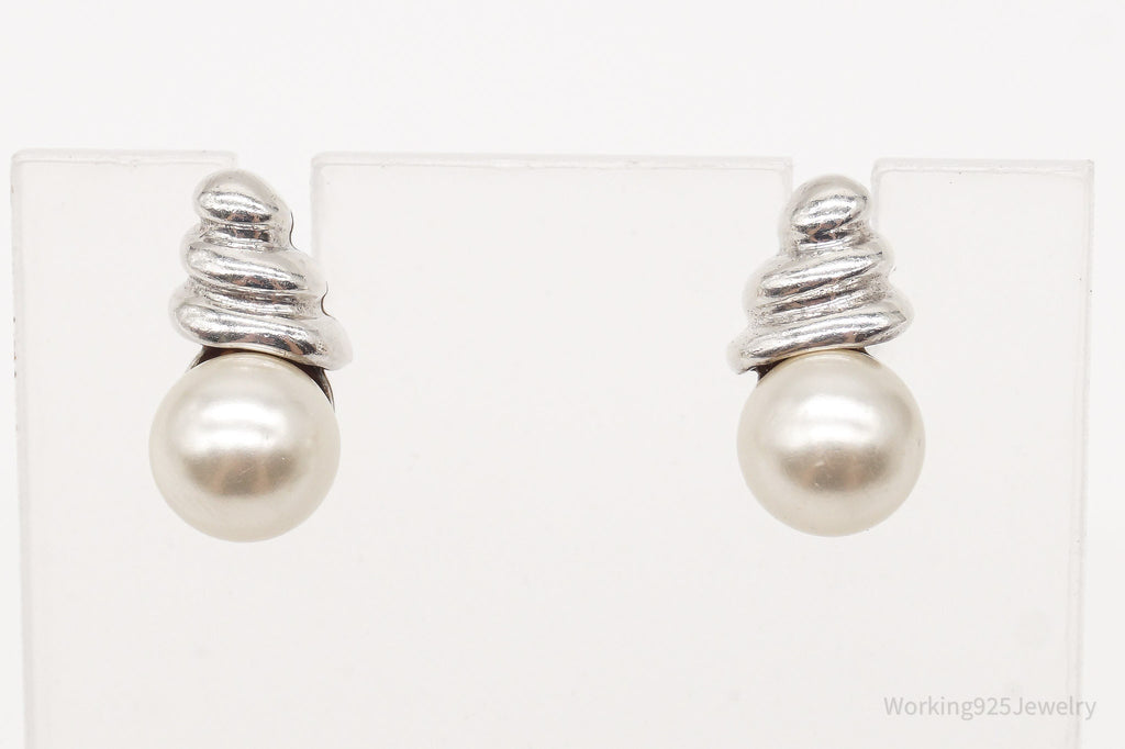 Vintage Designer MWS Pearl Sterling Silver Earrings