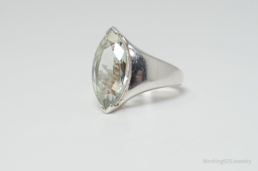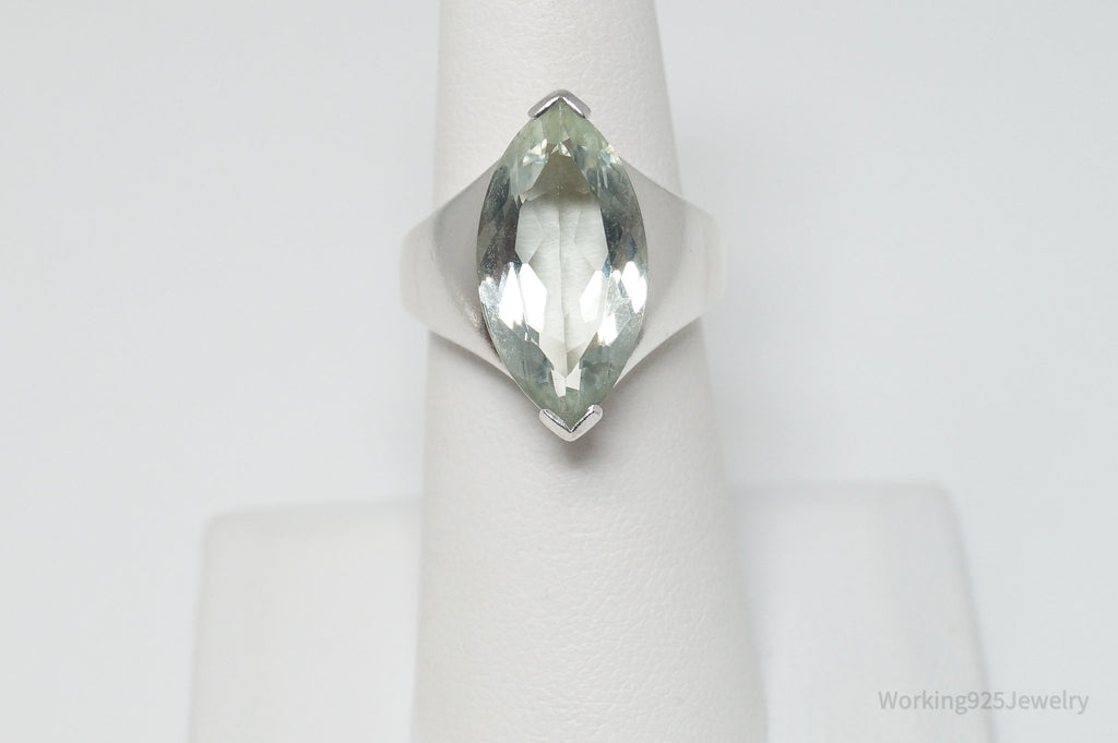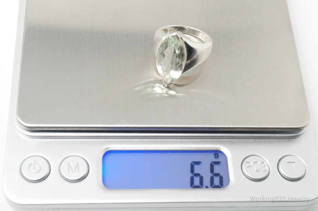 Vintage Designer Pale Green Gemstone Sterling Silver Ring - Sz 6