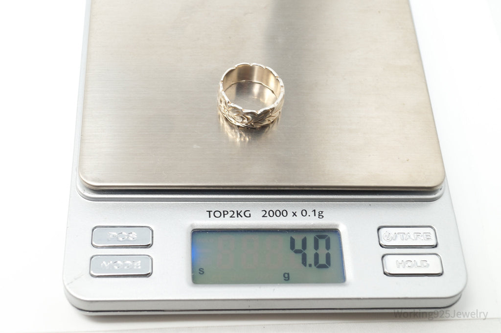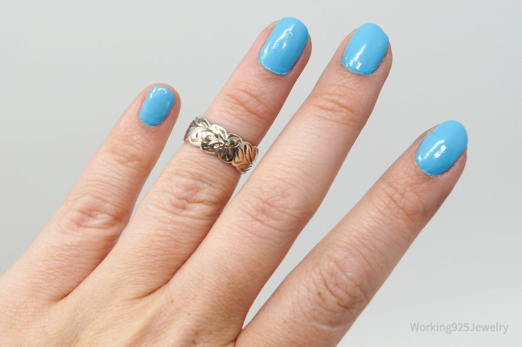 Vintage Designer PCU Art Nouveau Floral Sterling Silver Band Ring - Sz 5