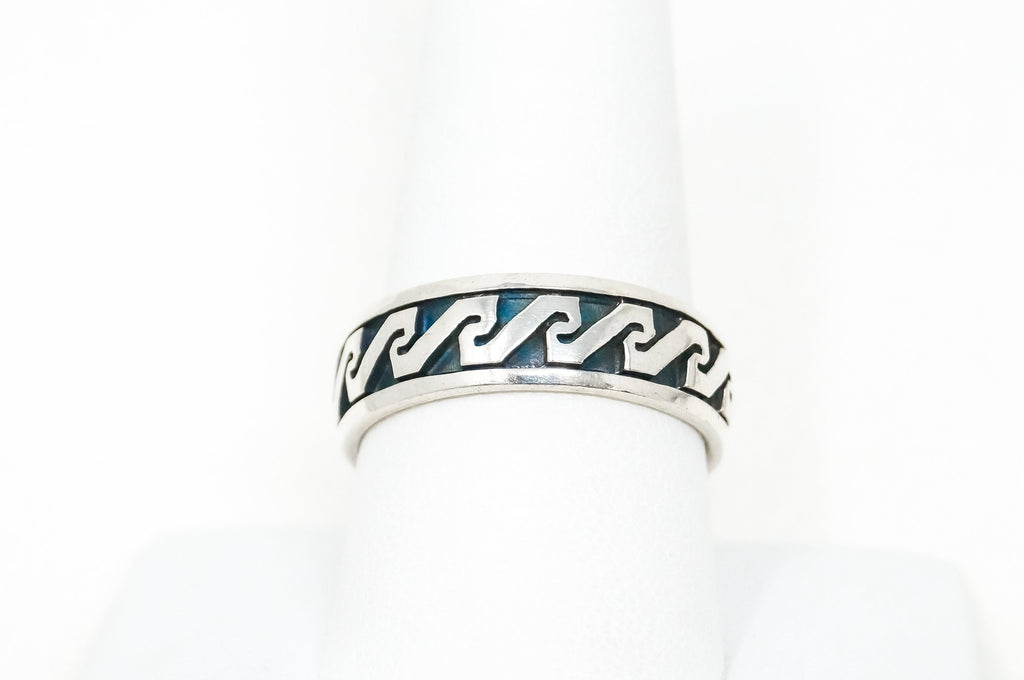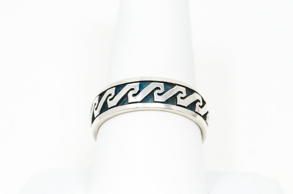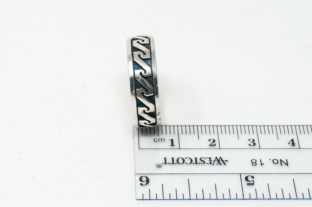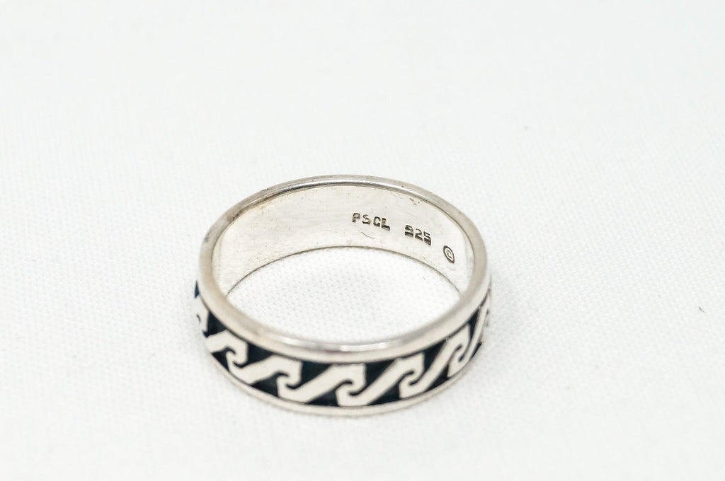 Vintage Designer PSCL Oxidized Design Sterling Silver Band Ring - Sz 10