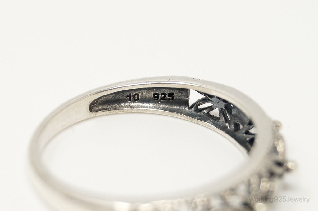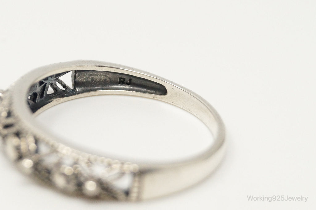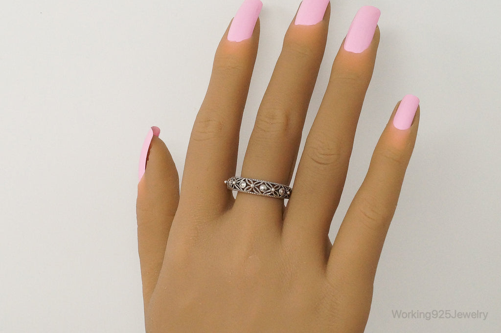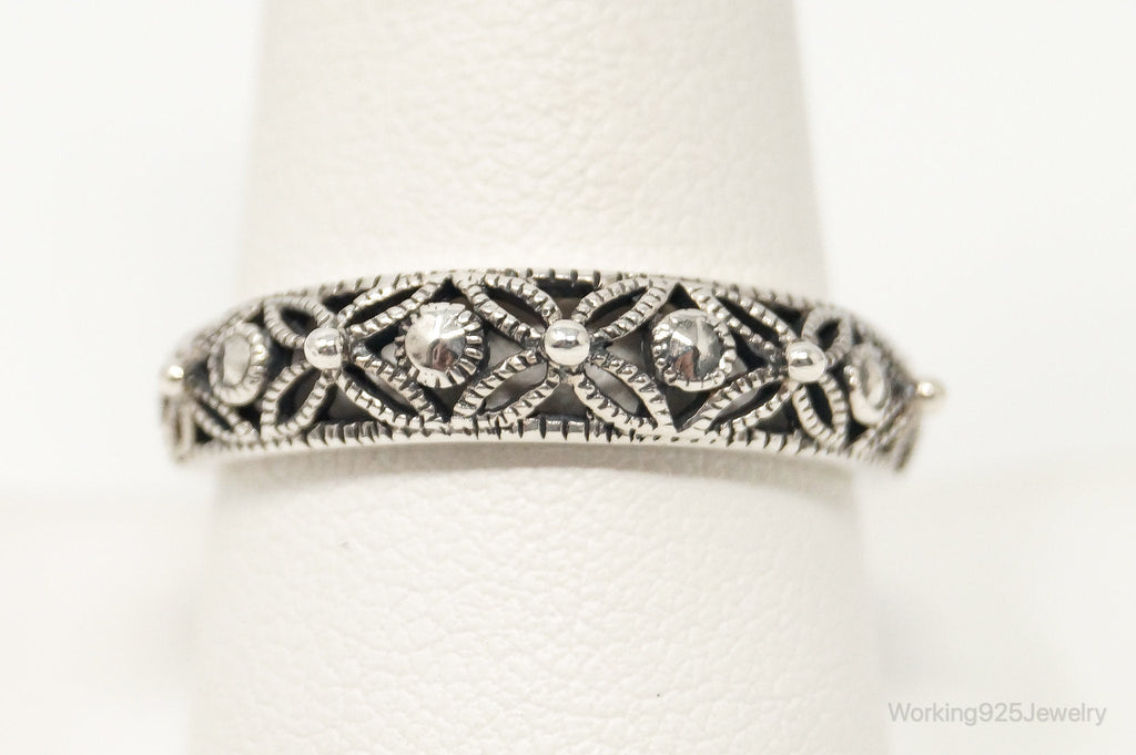 Vintage Designer RJ Floral Cut Out Sterling Silver Ring - SZ 10