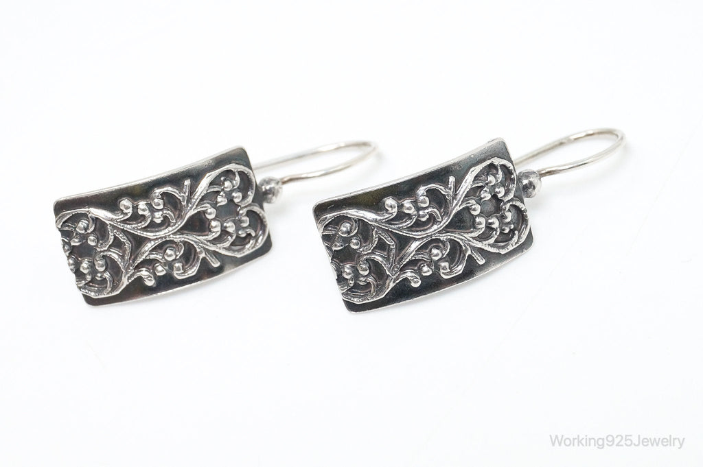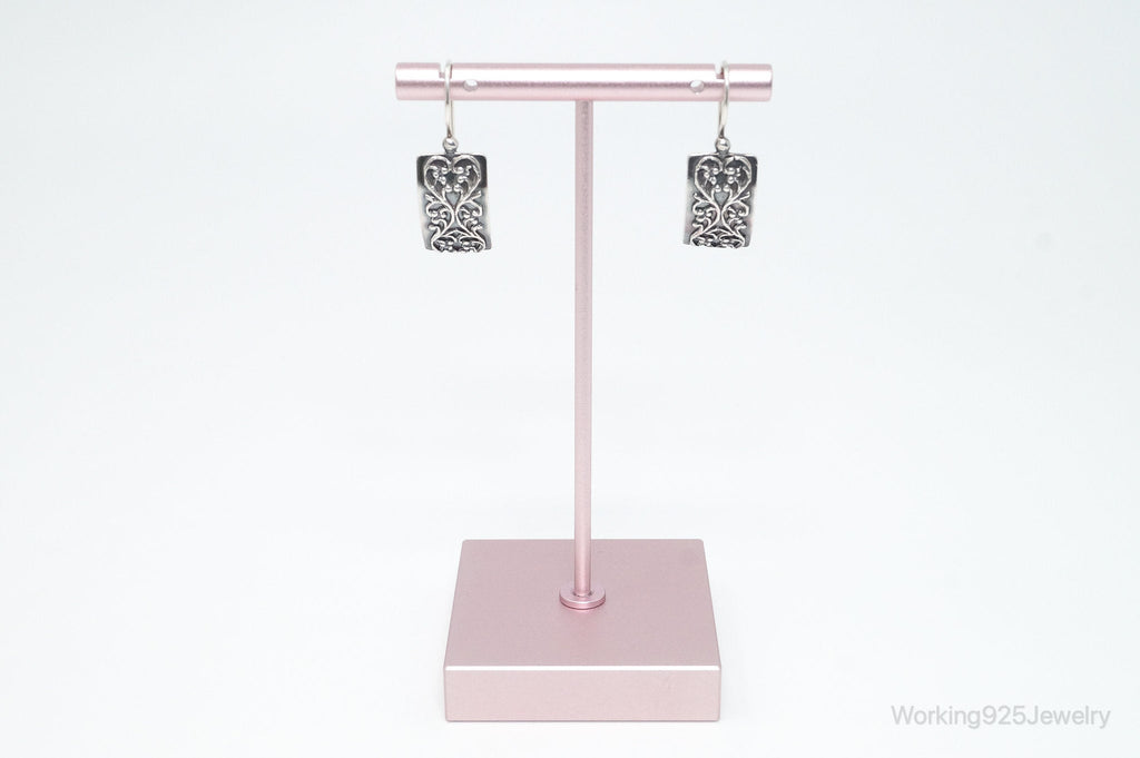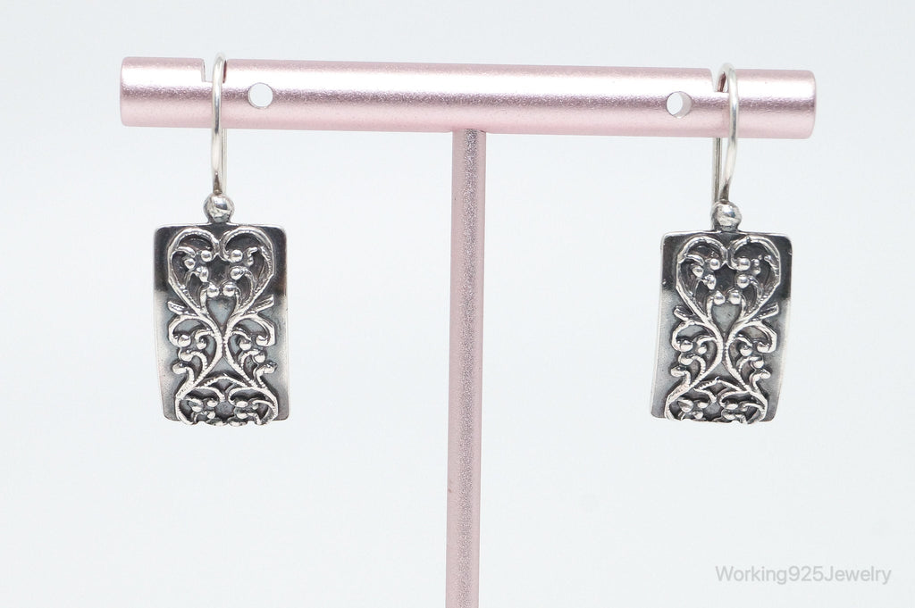 Vintage Designer Silpada Scroll Heart Square Sterling Silver Earrings