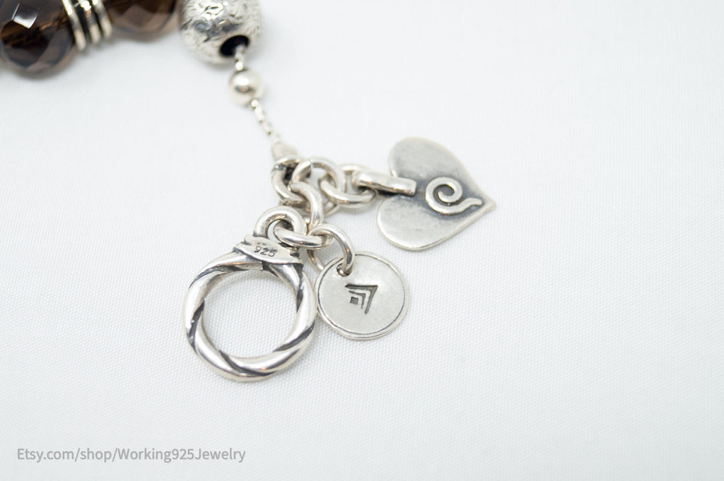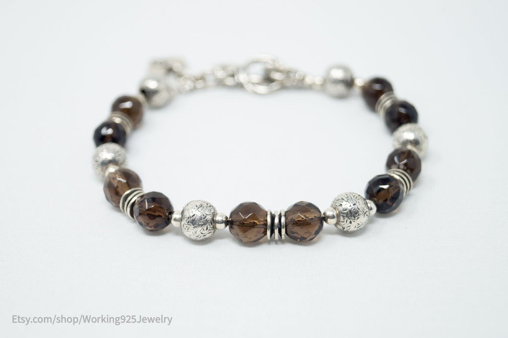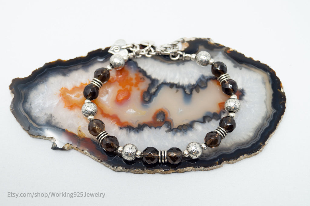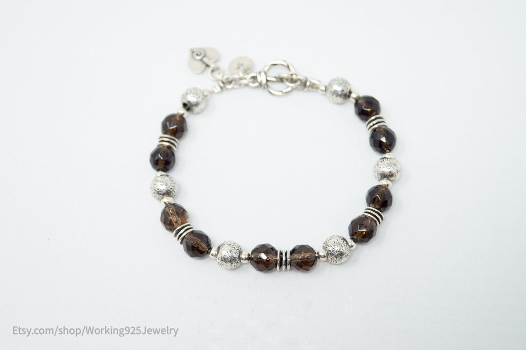 Vintage Designer Silpada Smoky Topaz Sterling Silver Bead Toggle Bracelet