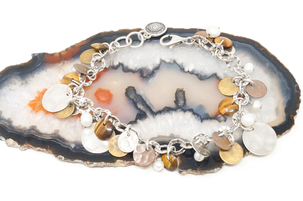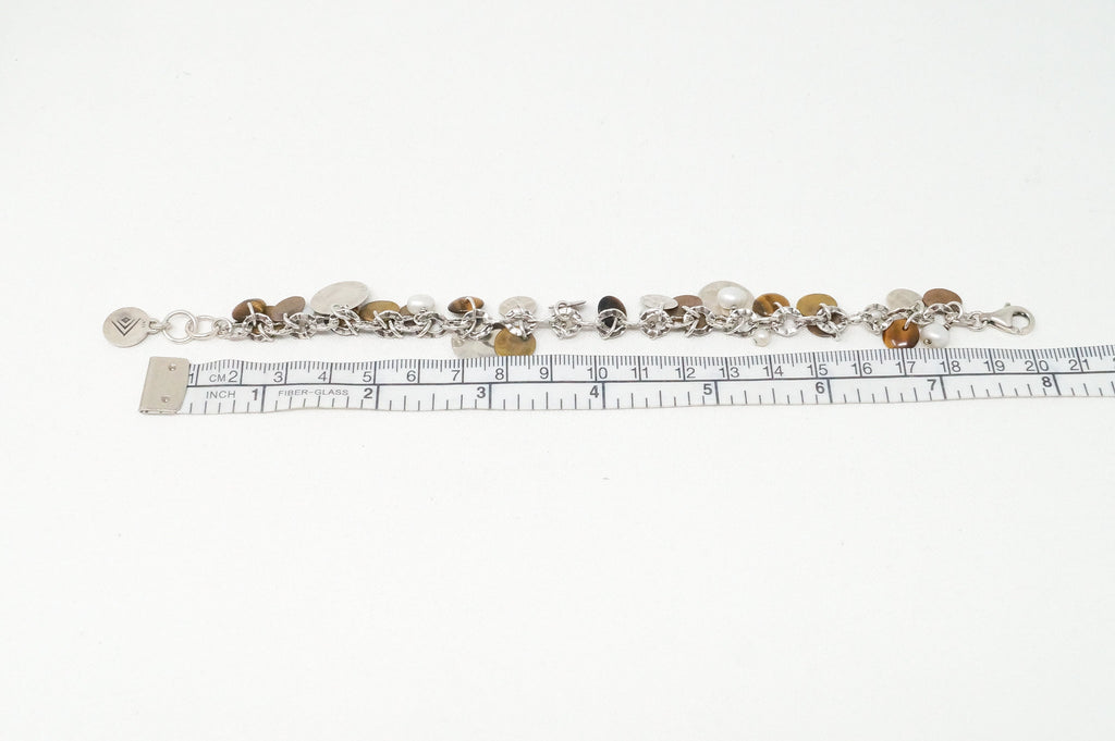 Vintage Designer Silpada Tigers Eye Hammered Sterling Silver Cuff Bracelet