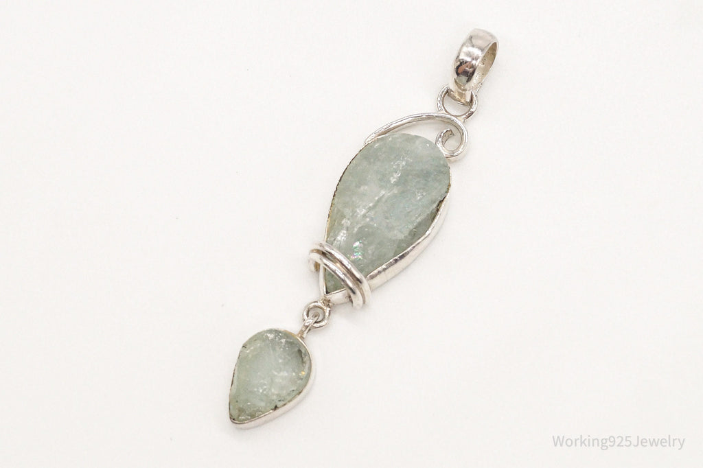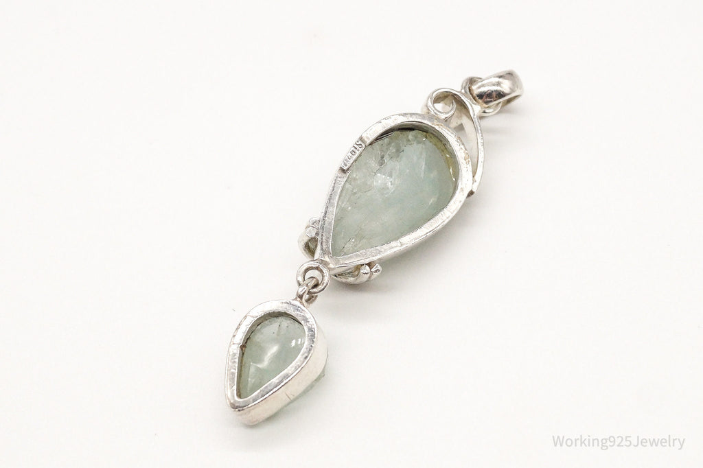 Vintage Designer SJ Large Green Calcite Sterling Silver Pendant