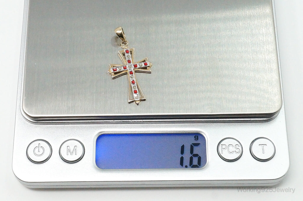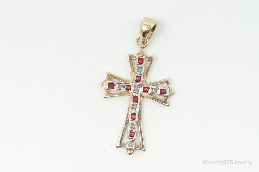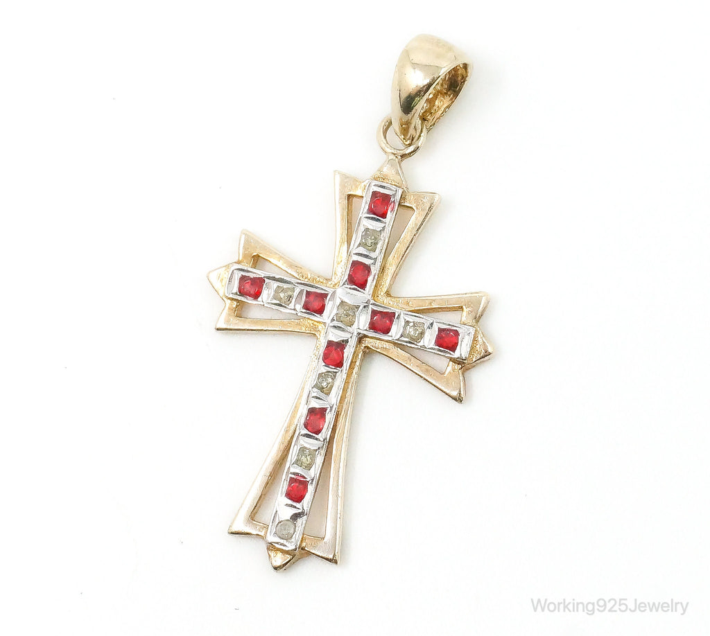 Vintage Designer SLC Ruby Rhinestone Gold Vermeil Cross Sterling Silver Pendant