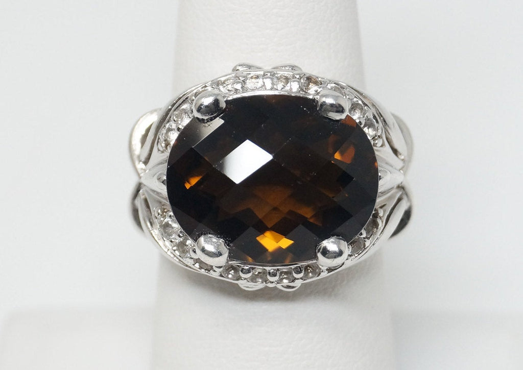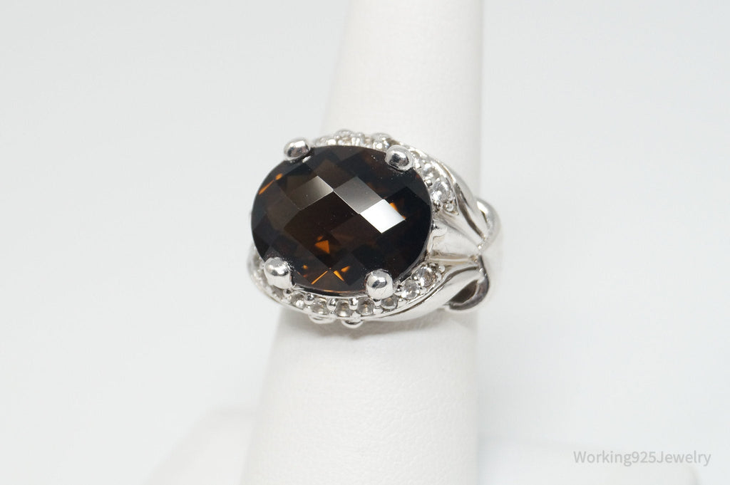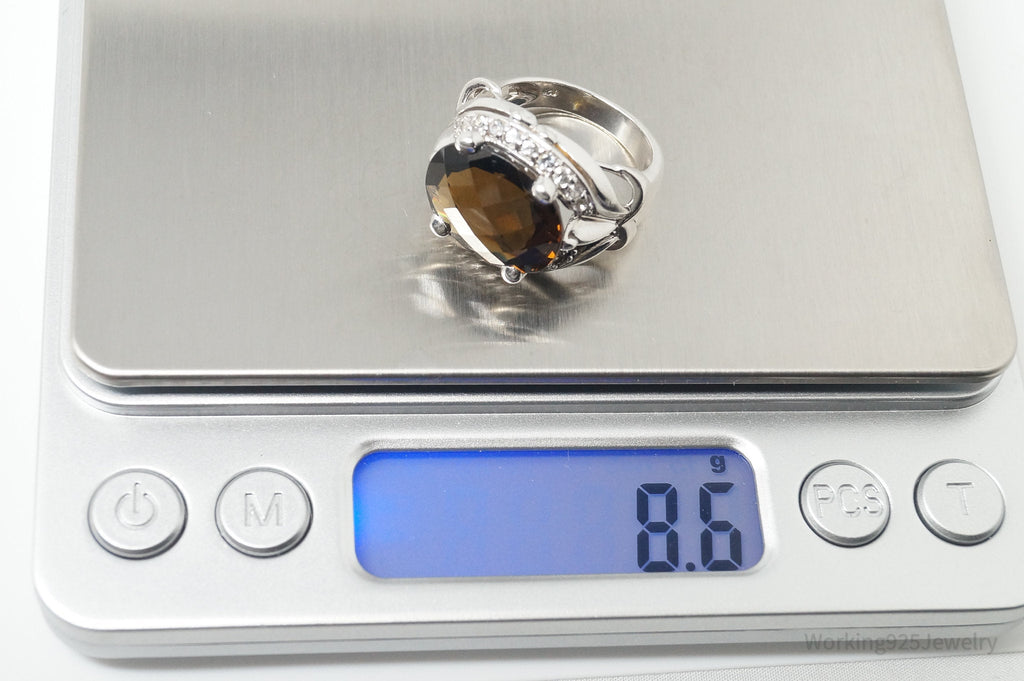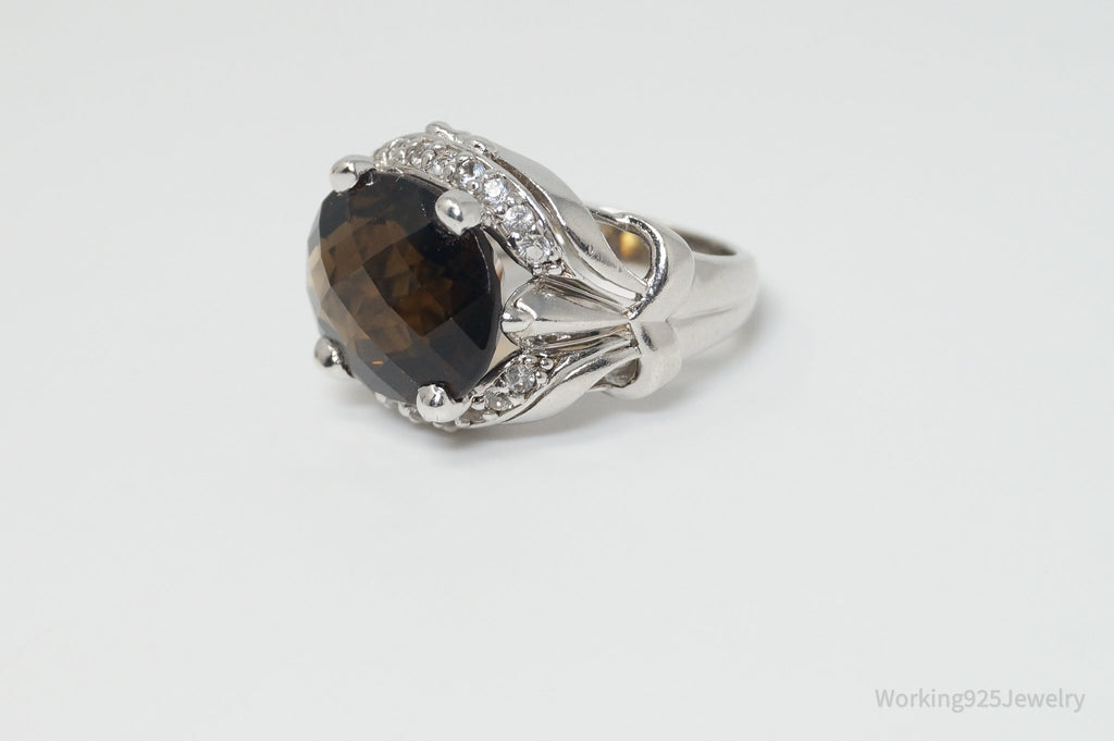 Vintage Designer Smoky Topaz CZ Sterling Silver Ring - Sz 6.75