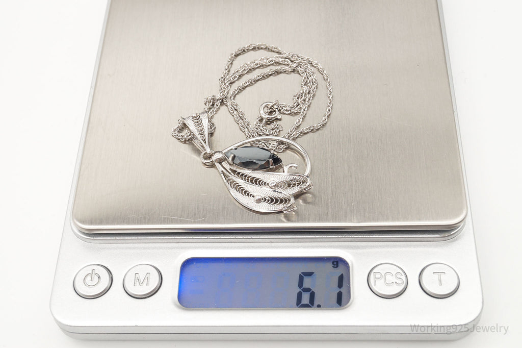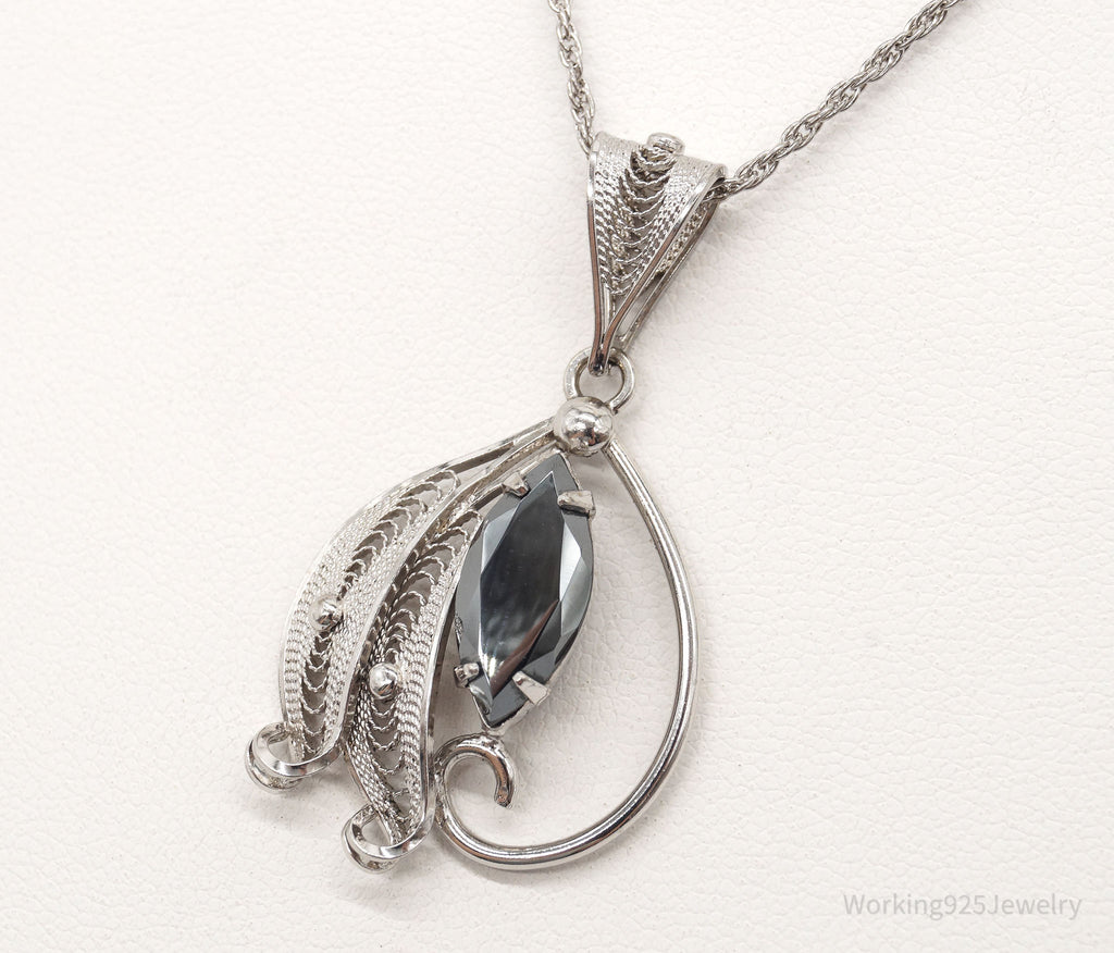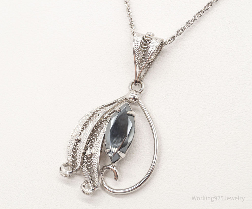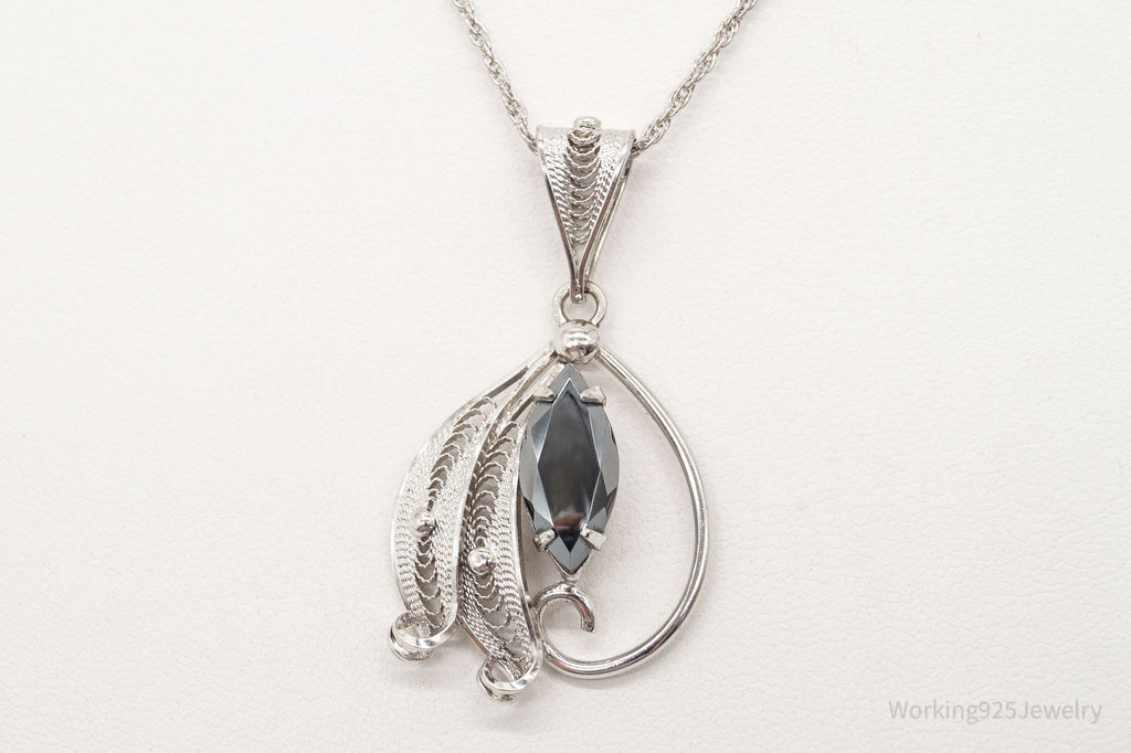 Vintage Designer Sorrento Hematite Filigree Sterling Silver Necklace