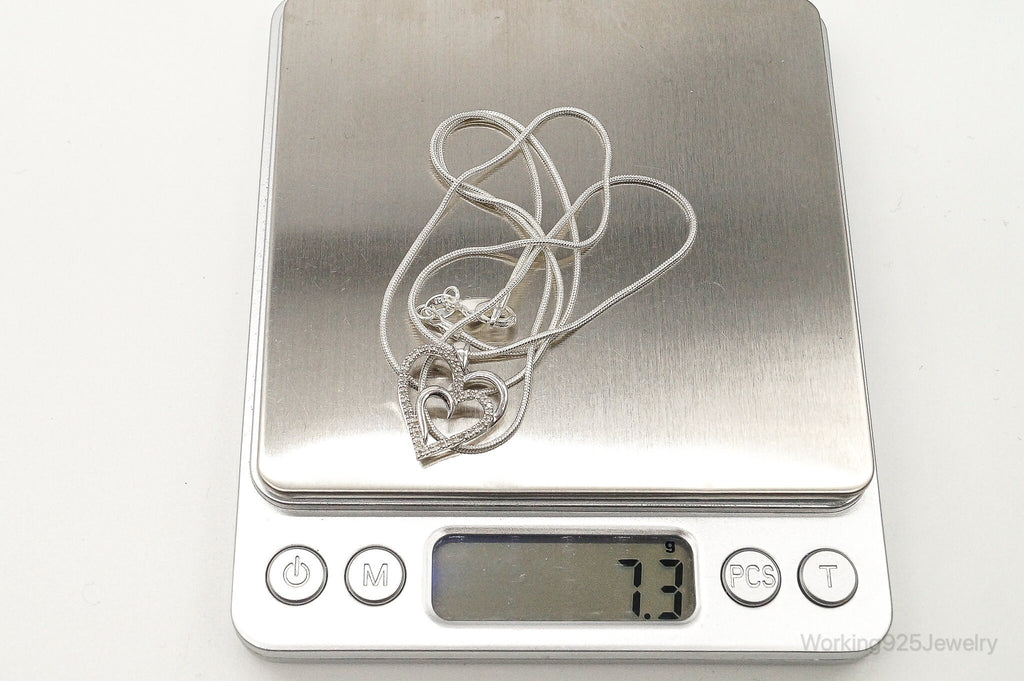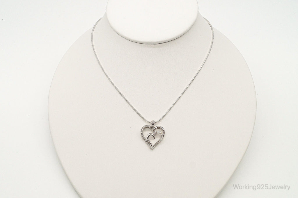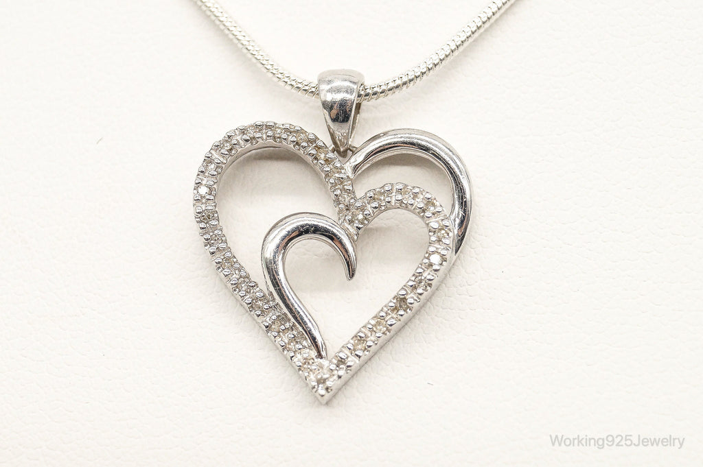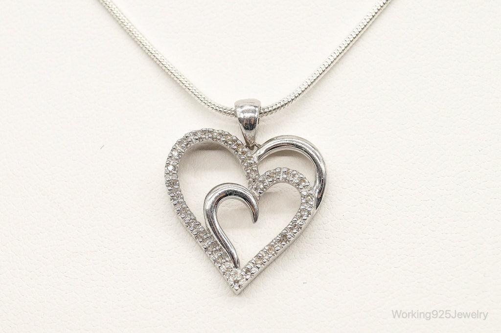 Vintage Designer SUN Diamond Heart Sterling Silver Necklace
