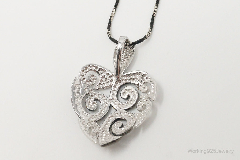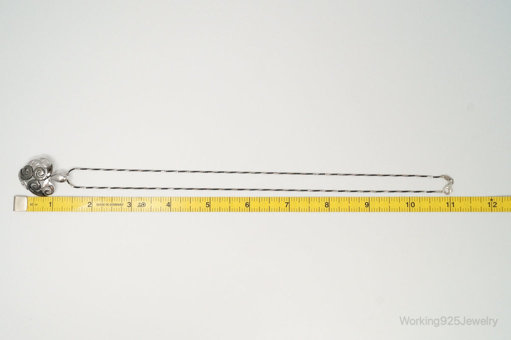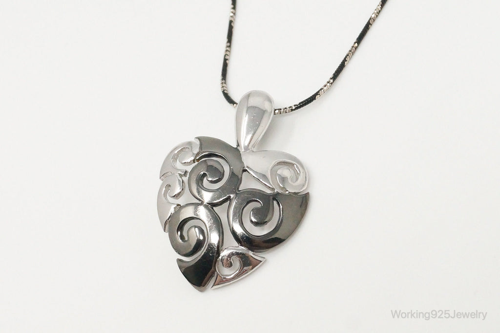 Vintage Designer Swirl Heart Sterling Silver Necklace