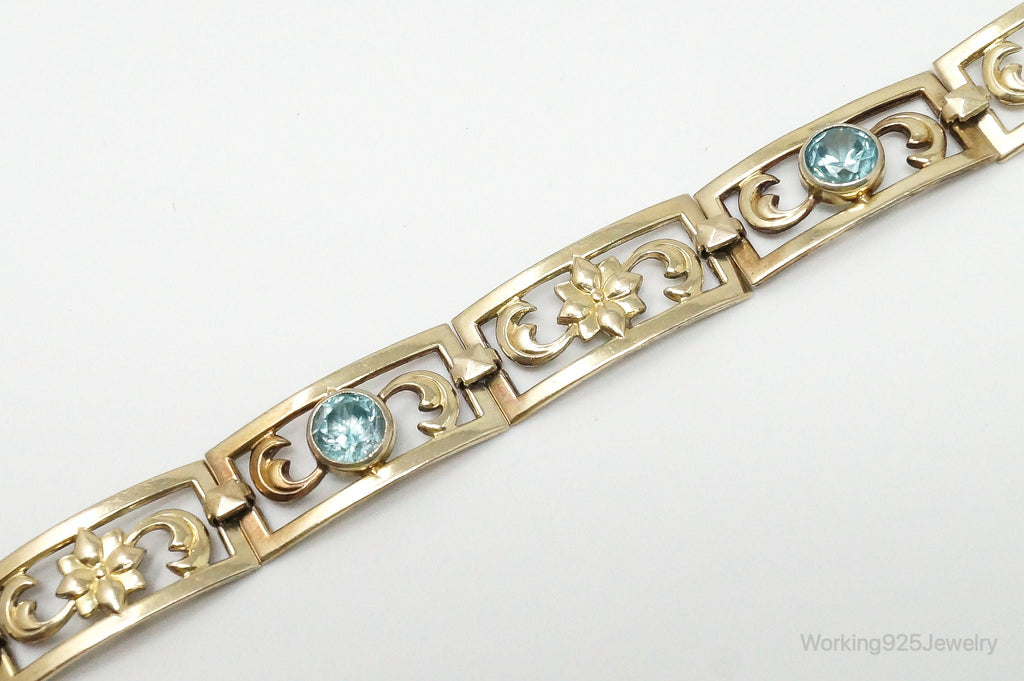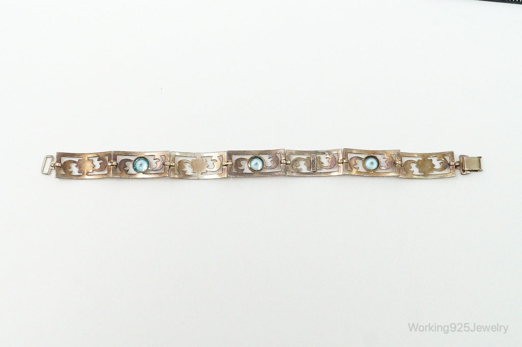 Vintage Designer Symmetalic 14K Gold Blue Topaz Art Deco SterlingSilver Bracelet
