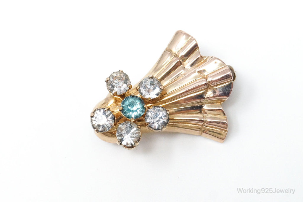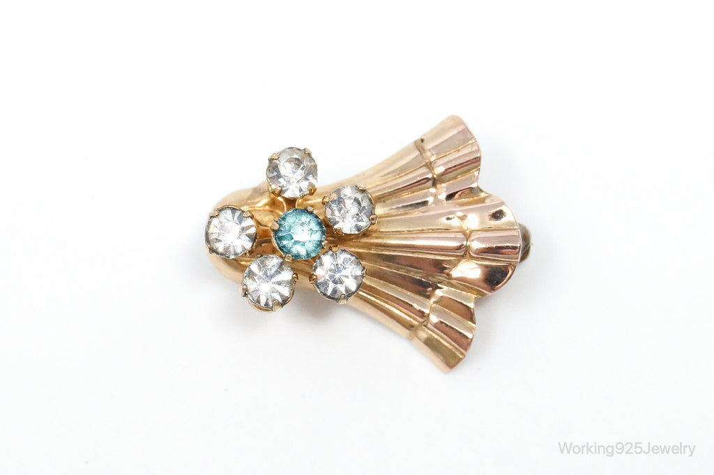 Vintage Designer VAN DELL 12K GF Rhinestones Brooch Pin