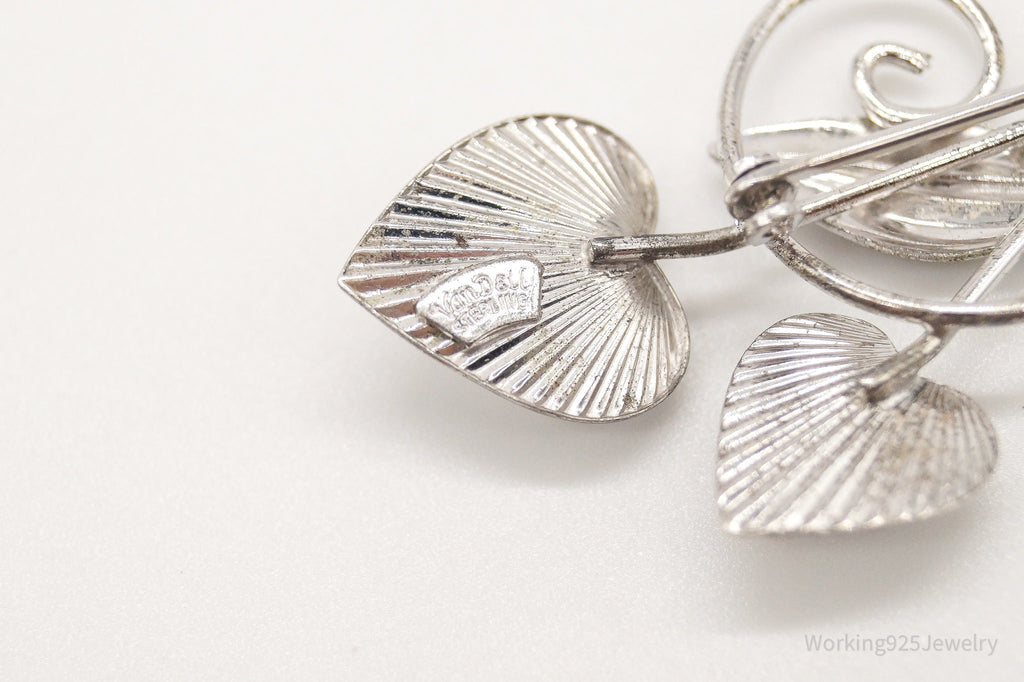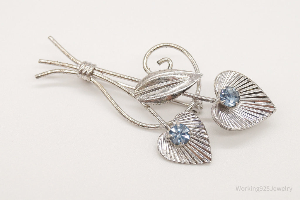 Vintage Designer VAN DELL Blue Rhinestones Sterling Silver Brooch Pin