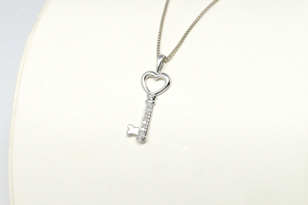 Vintage Diamond Heart Key "Key To My Heart" Sterling Silver Necklace 20"