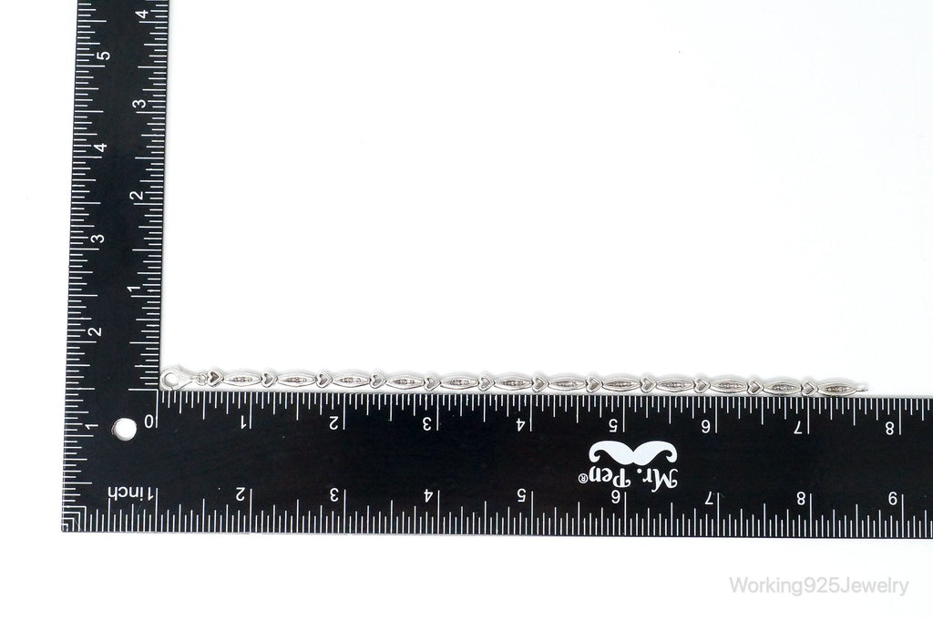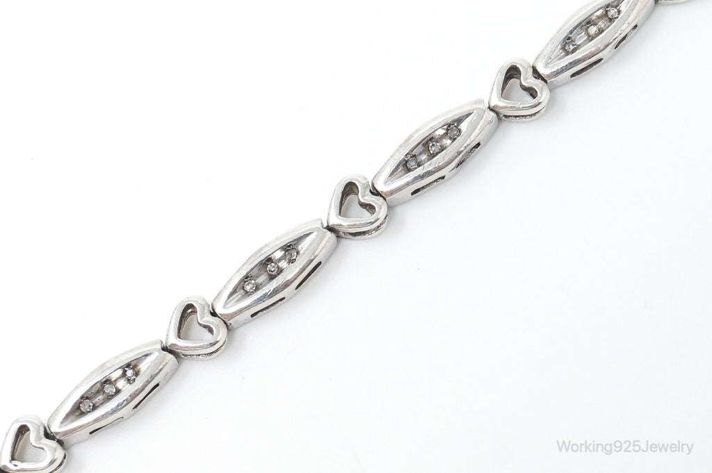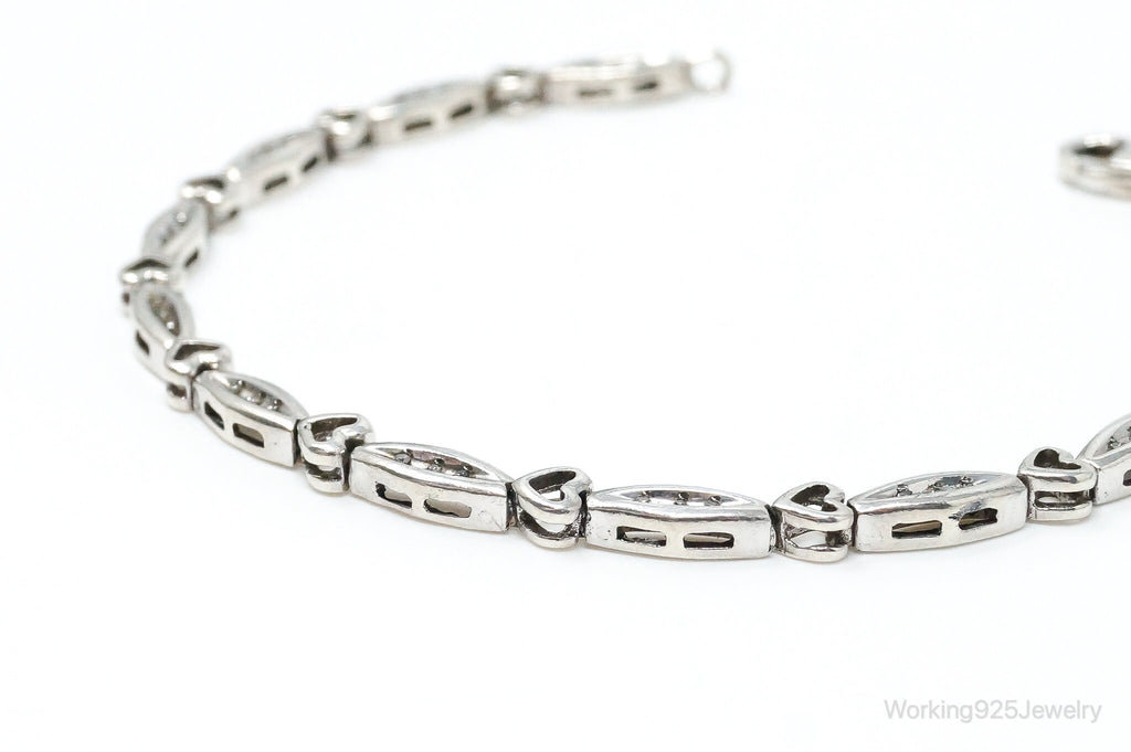 Vintage Diamonds Linked Hearts Sterling Silver Bracelet