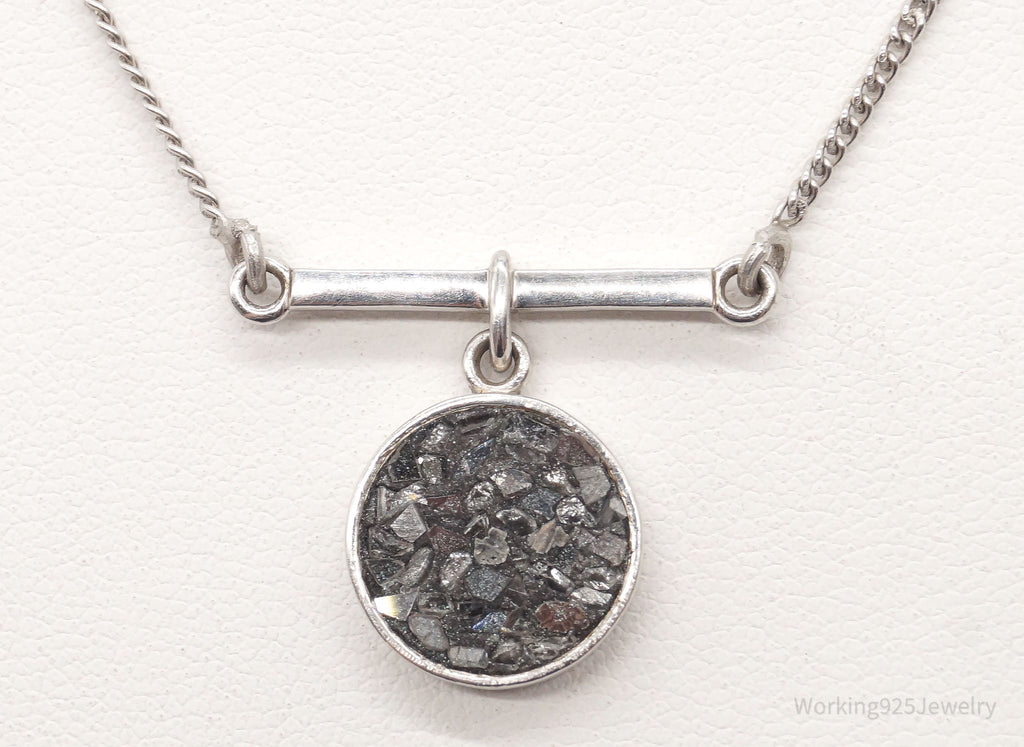 Vintage Druzy Quartz Modernist Sterling Silver Chain Necklace