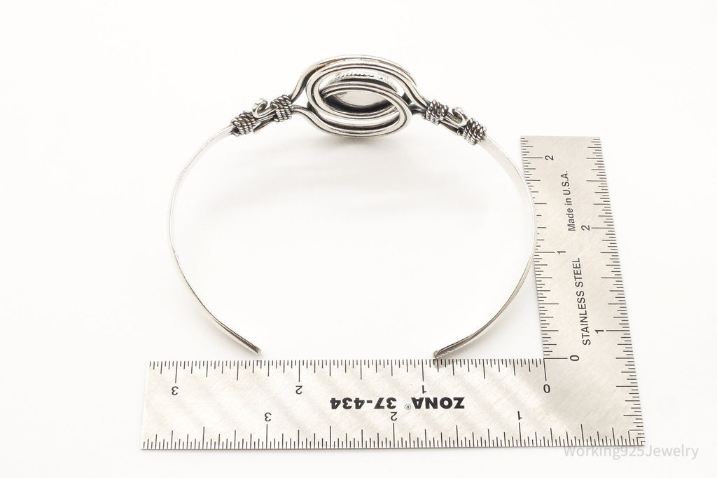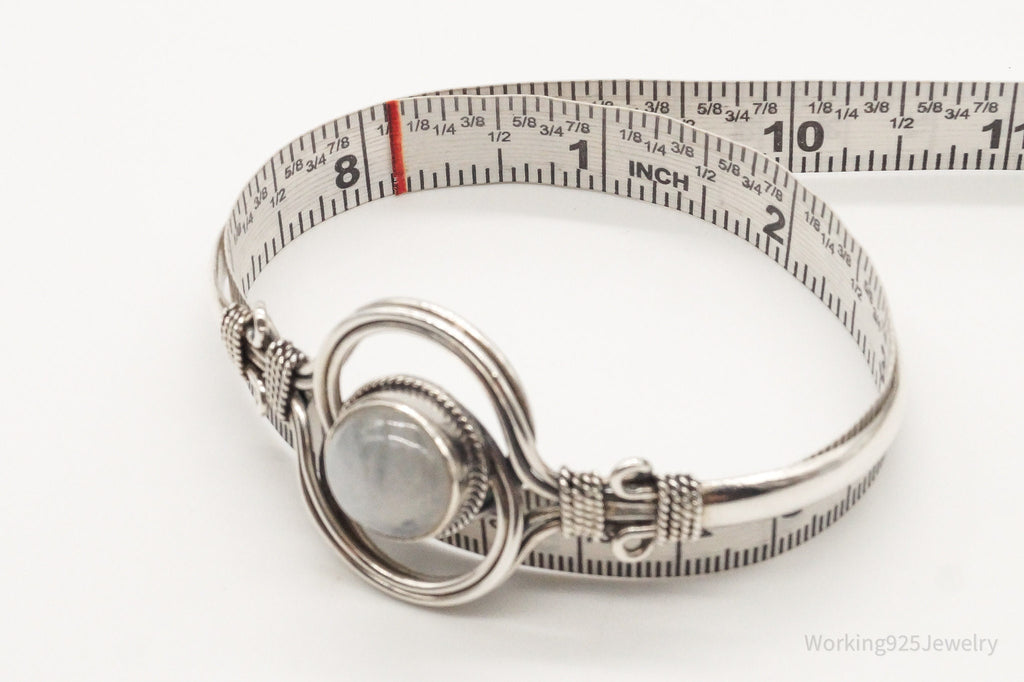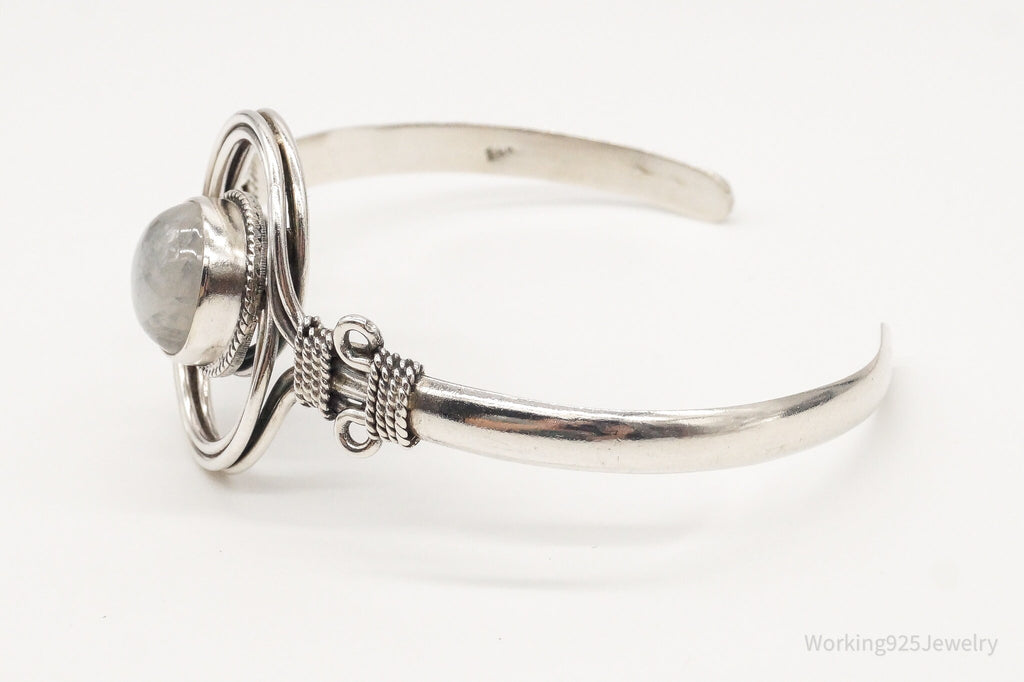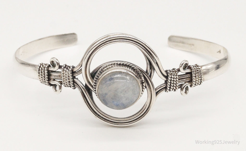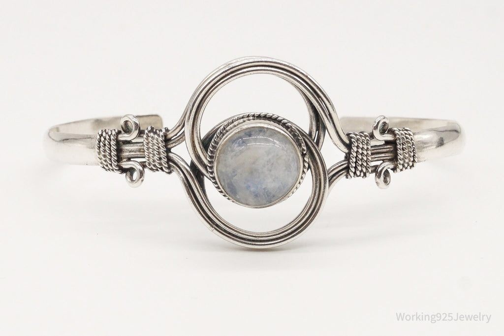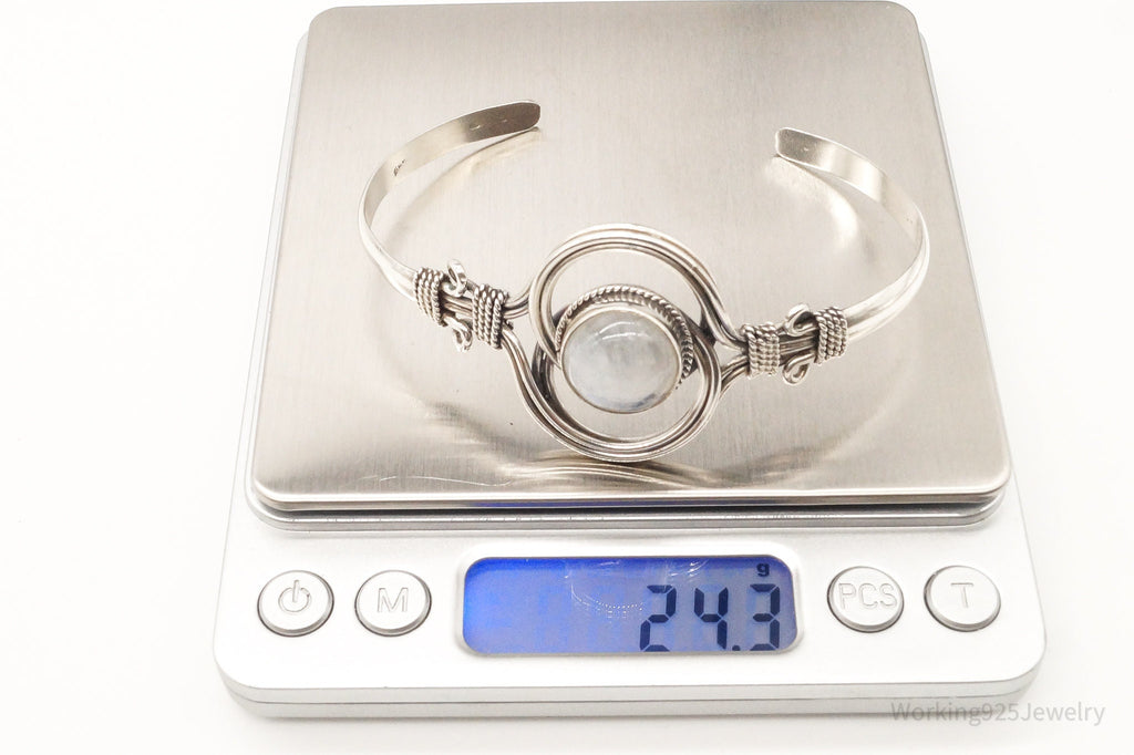 Vintage Filigree Moonstone Sterling Silver Cuff Bracelet