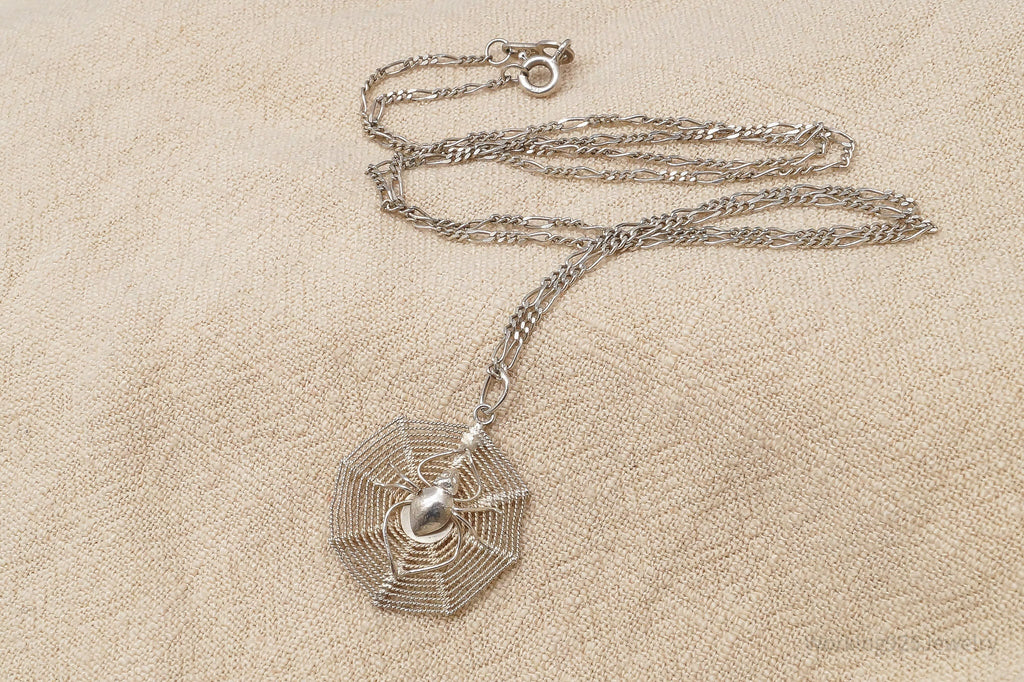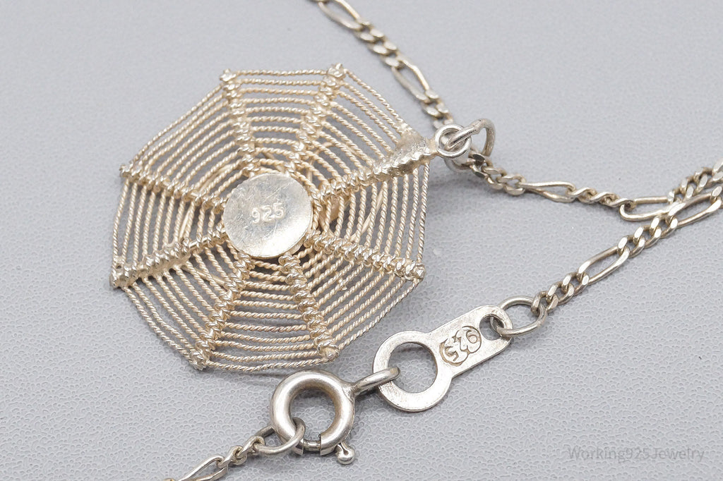 Vintage Filigree Spider In Web Sterling Silver Necklace 20"