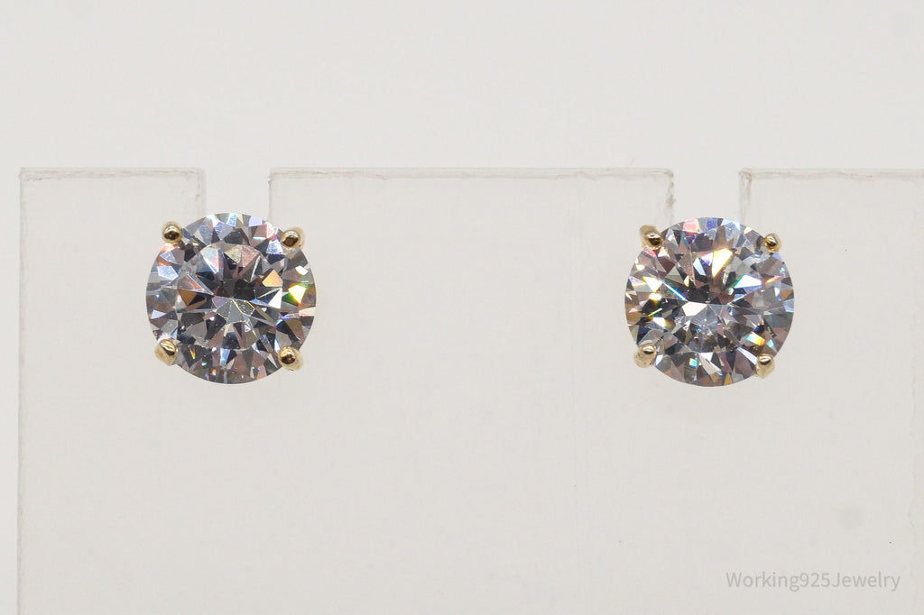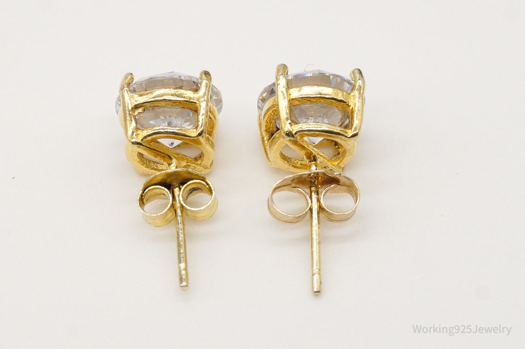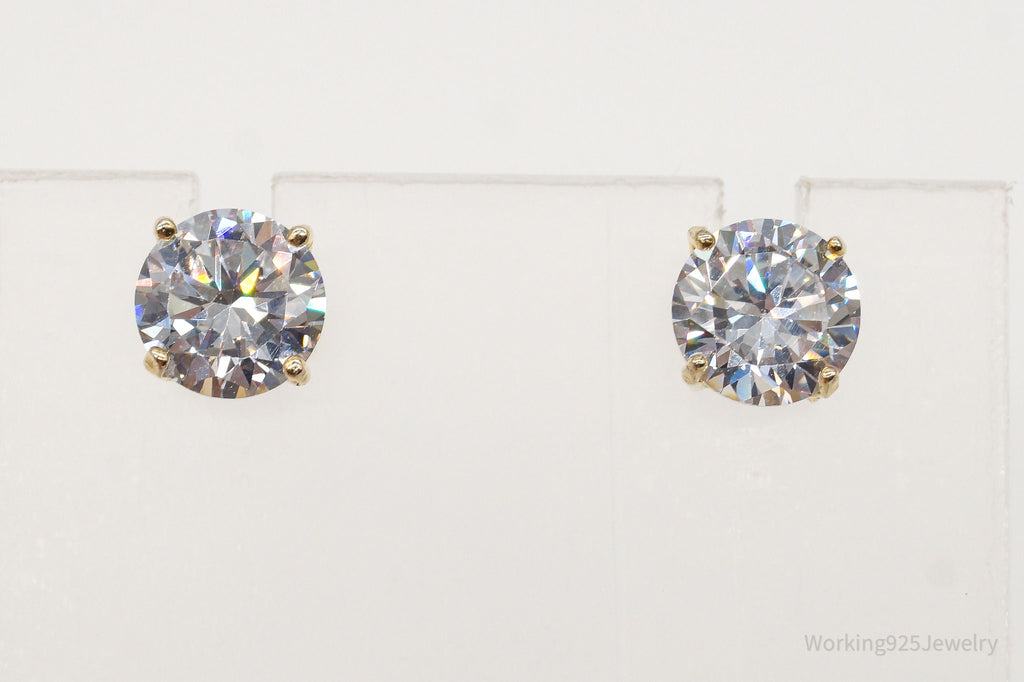 Vintage FZN Large Cubic Zirconia Gold Vermeil Sterling Silver Earrings