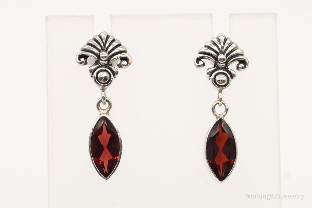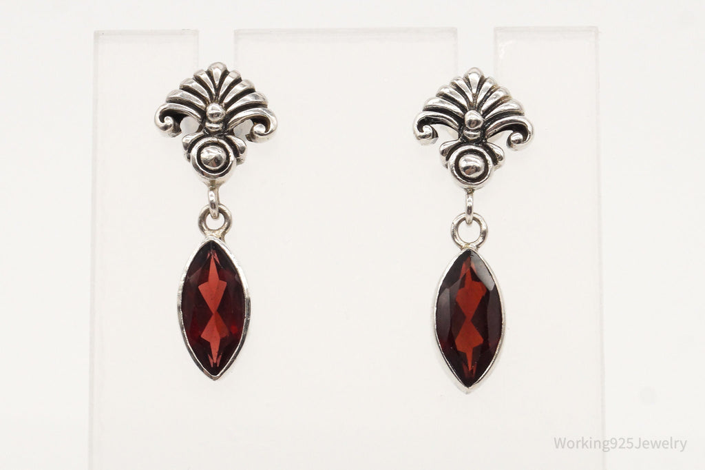 Vintage Garnet Art Deco Sterling Silver Earrings