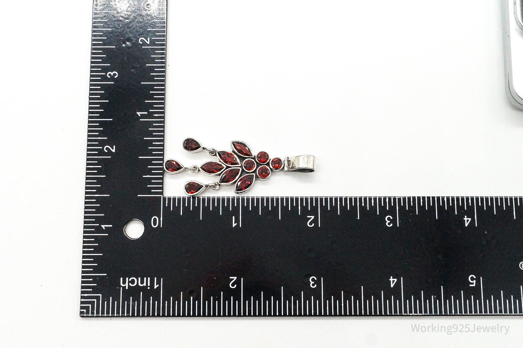 Vintage Garnet Bali Style Sterling Silver Dangle Pendant