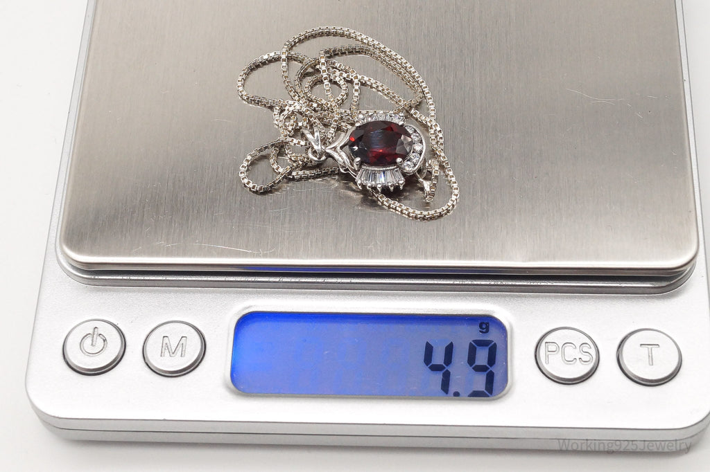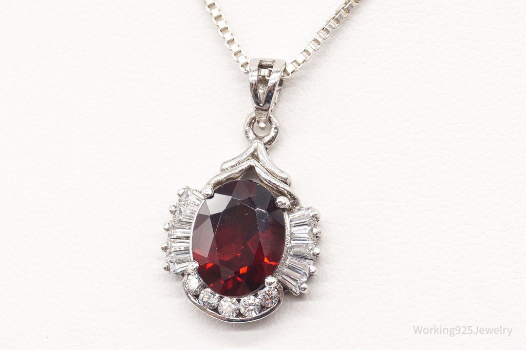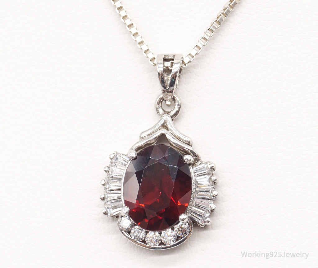 Vintage Garnet Cubic Zirconia Sterling Silver Necklace