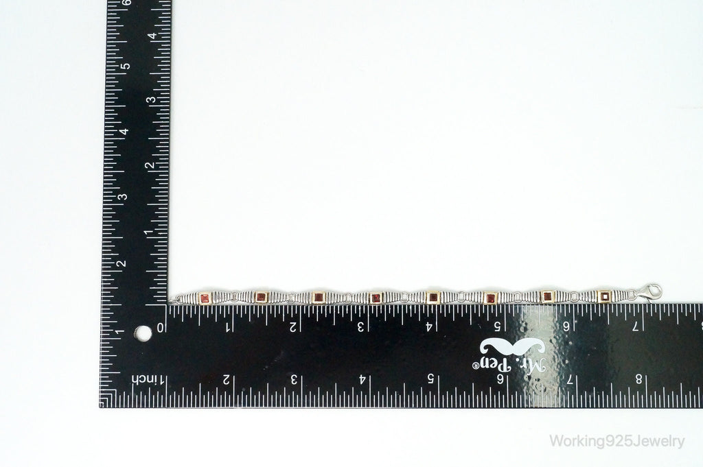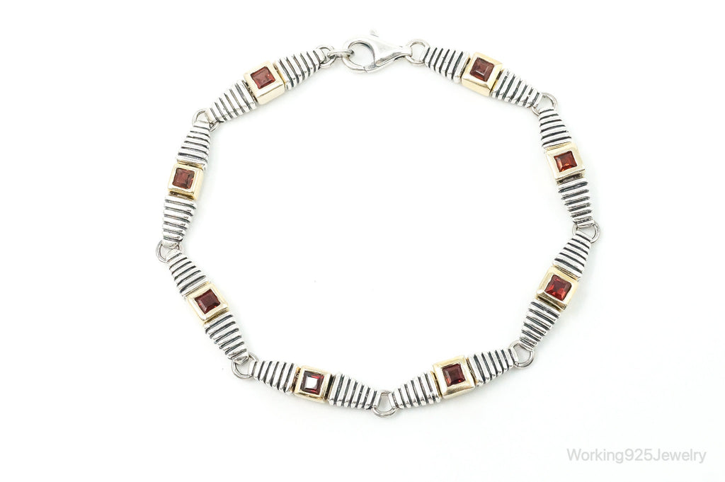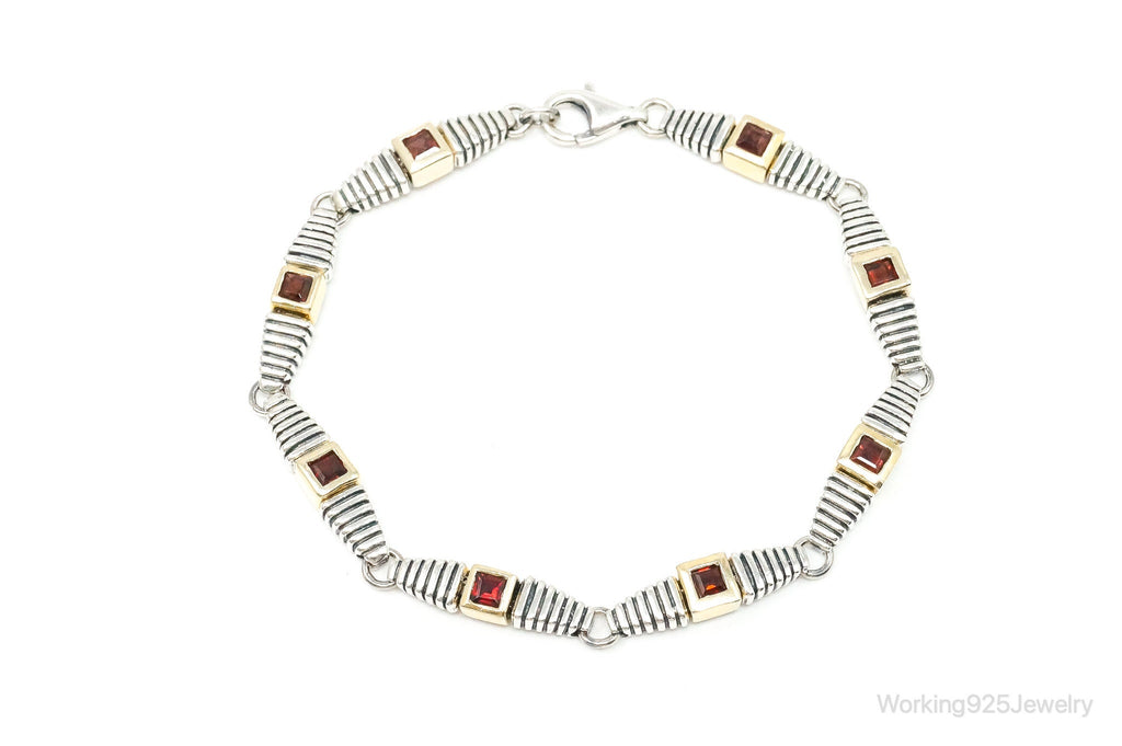 Vintage Garnet Gold Vermeil Sterling Silver Bracelet