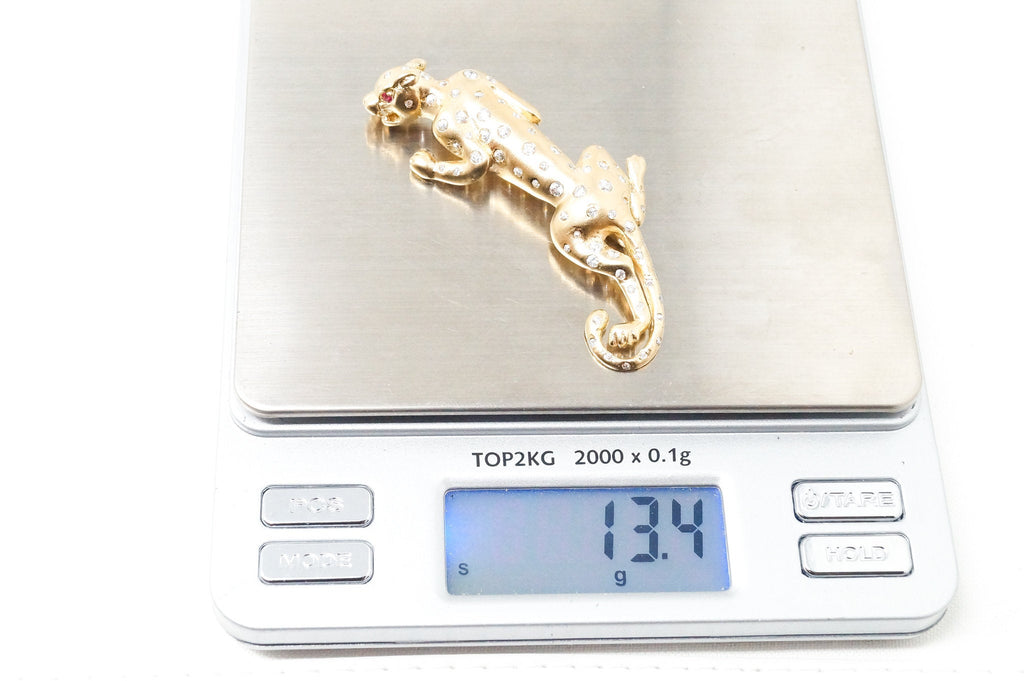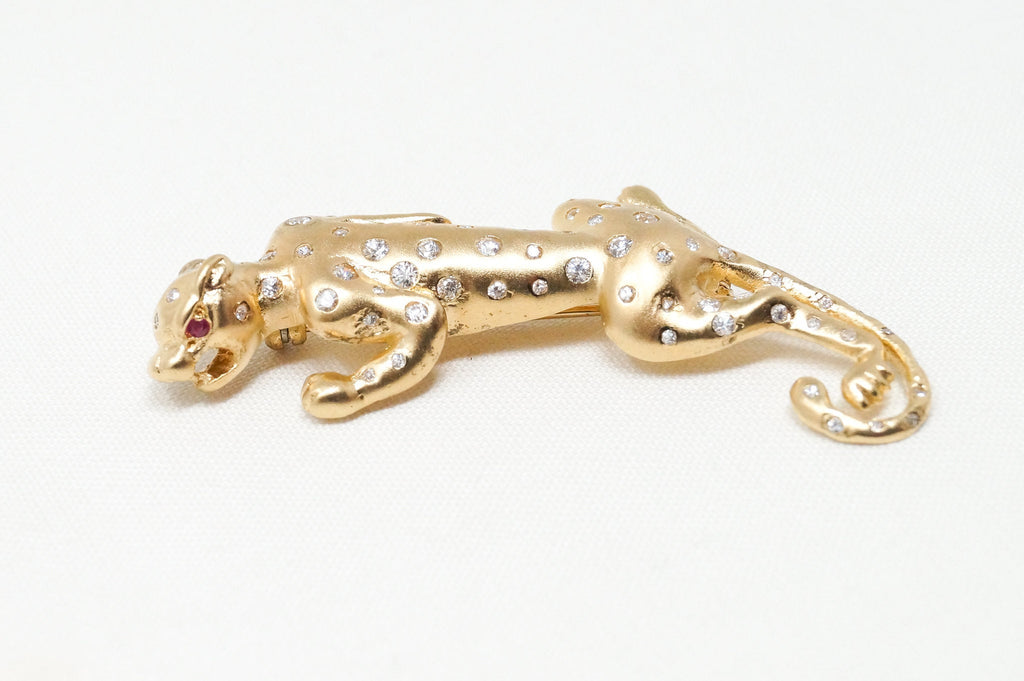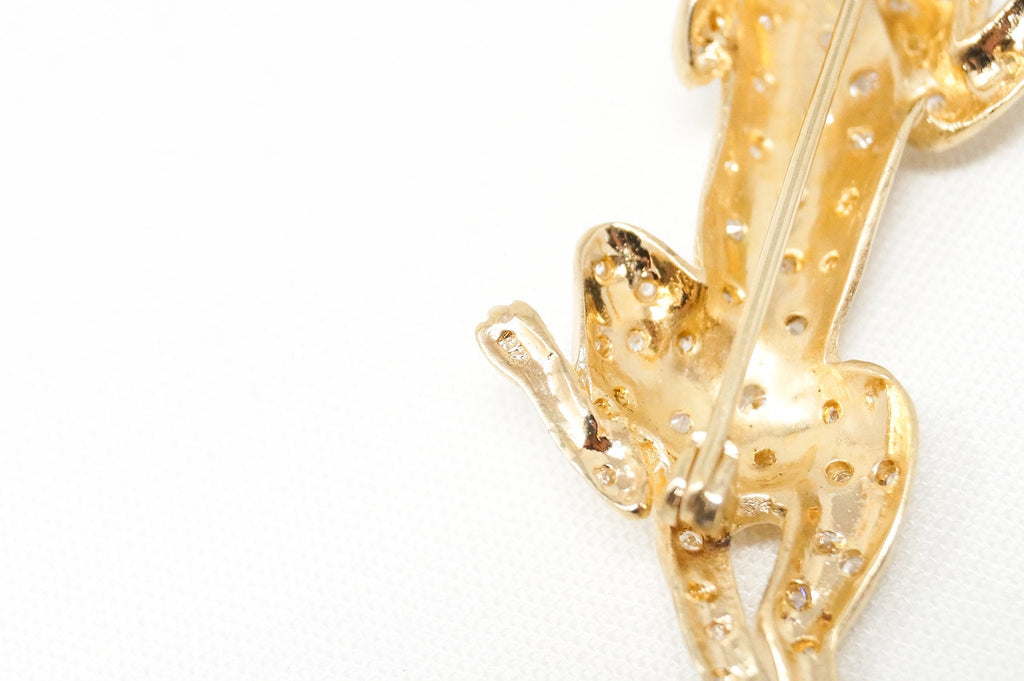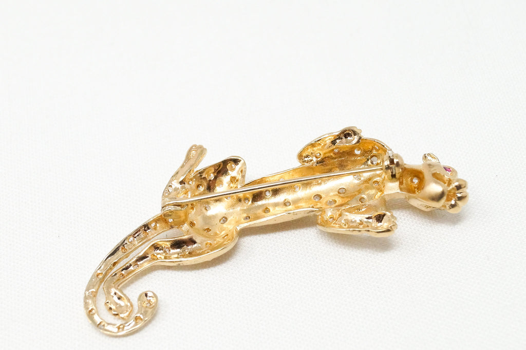 Vintage Gold Vermeil Garnet CZ Cheetah Sterling Silver Brooch Pin