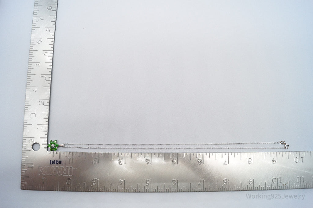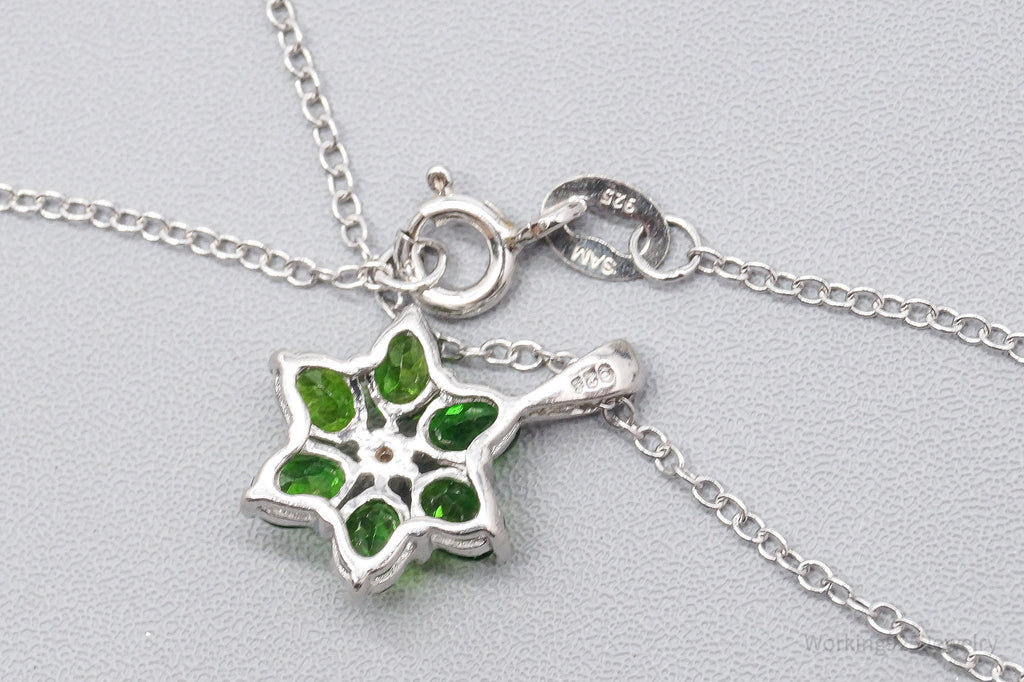 Vintage Green Chrome Diopside Diamond Sterling Silver Flower Necklace 18"