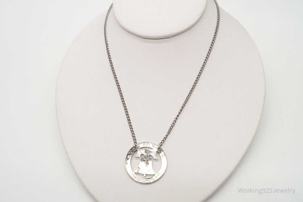 Vintage Half Dollar Coin Cut Out Pendant Silver Chain Necklace