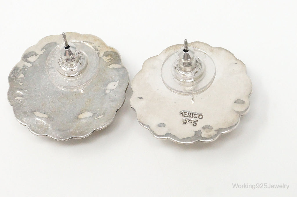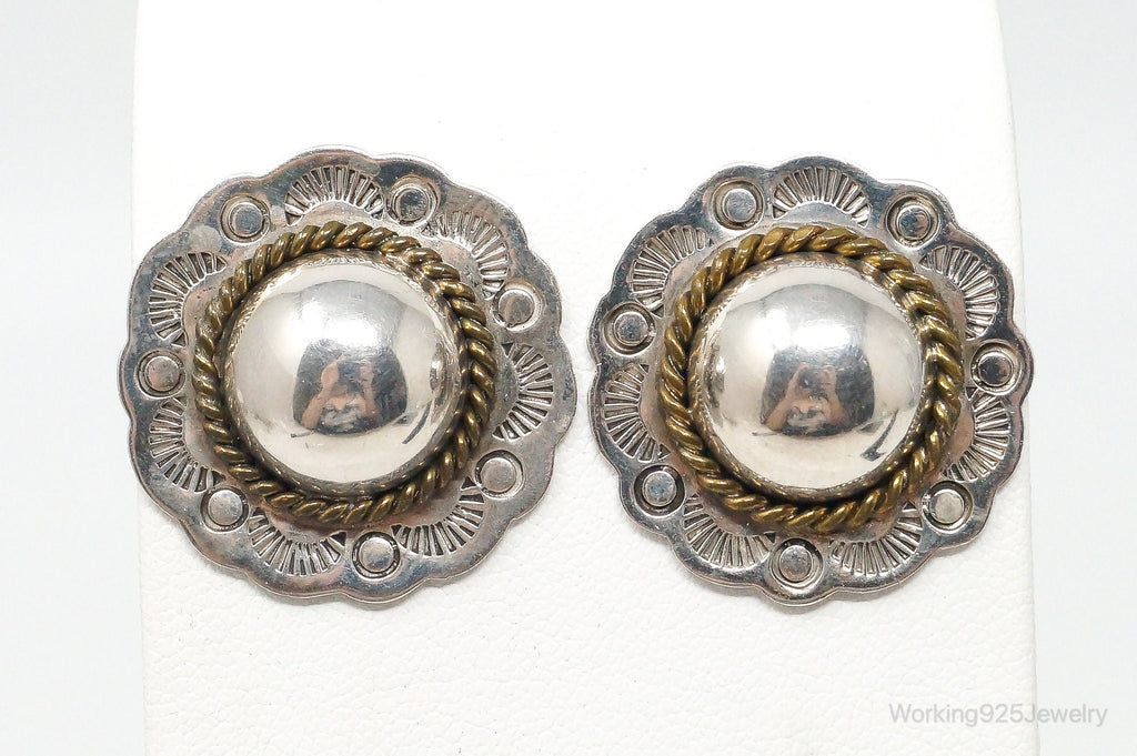 Vintage Handmade Mexico Sterling Silver Brass Stud Earrings