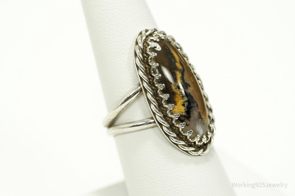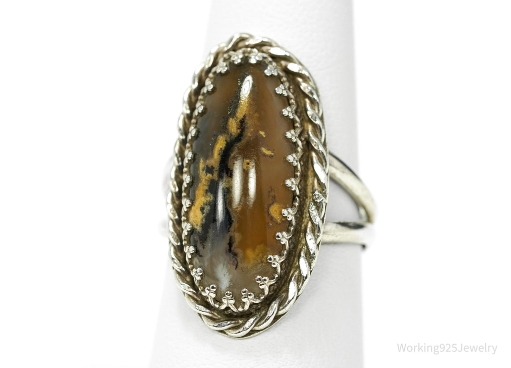 Vintage Handmade Native American Agate Sterling Silver Ring - SZ 8
