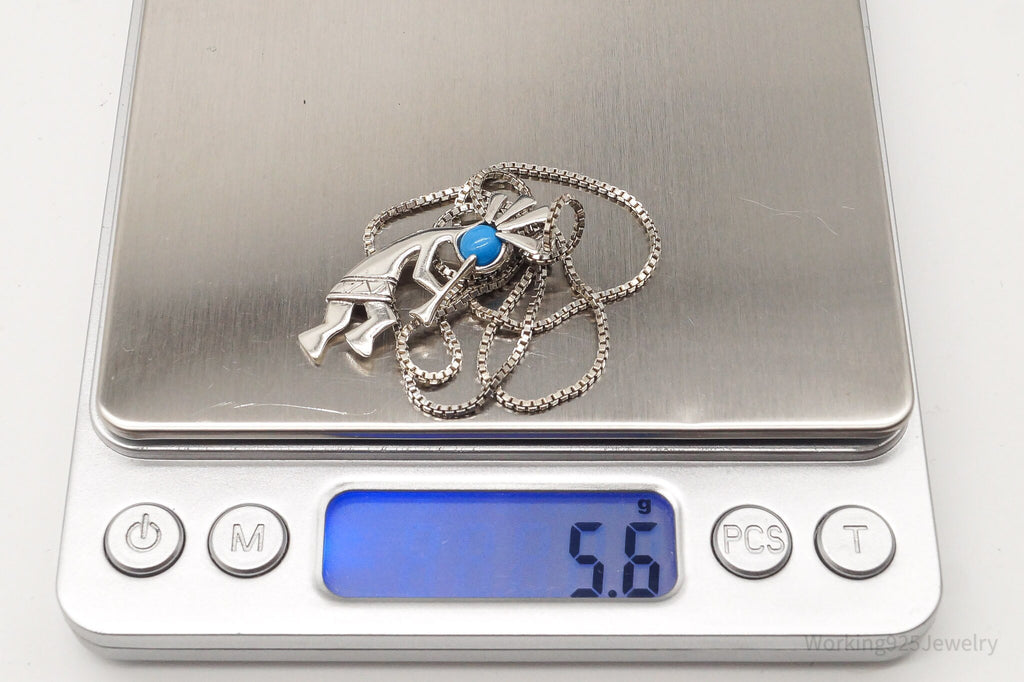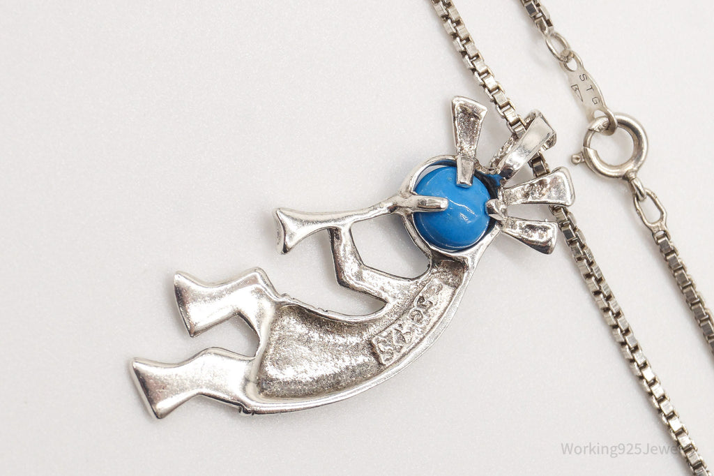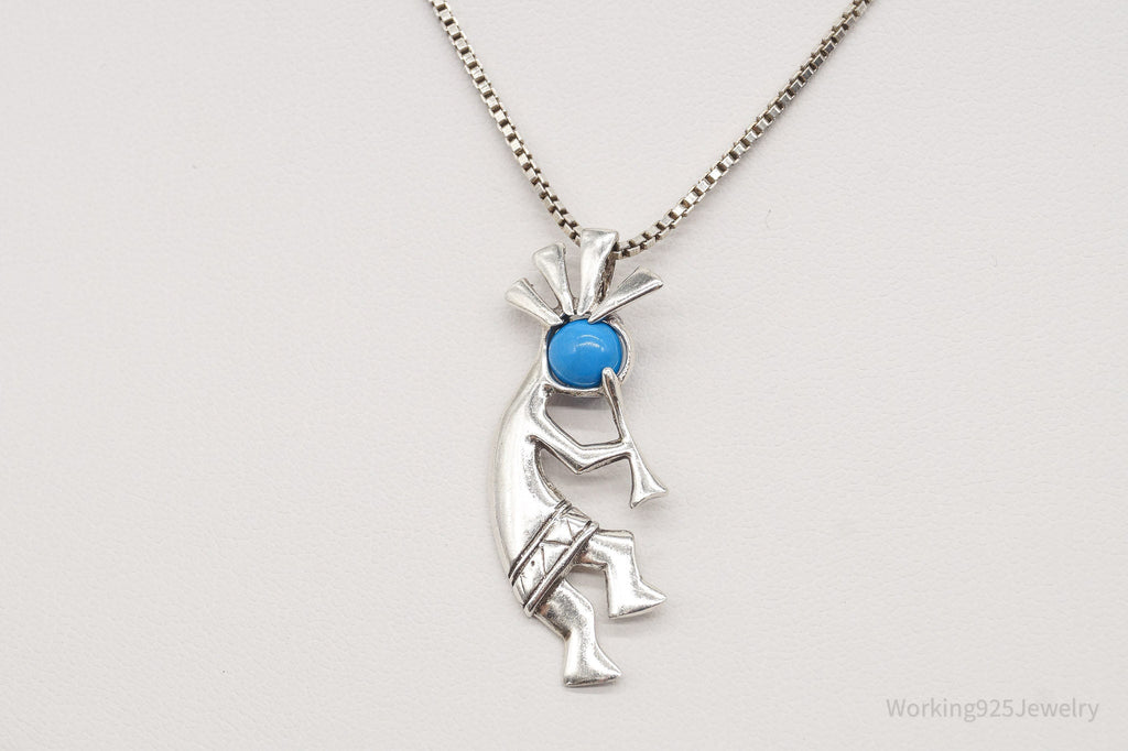 Vintage Handmade Native American Kokopelli Turquoise Sterling Silver Necklace