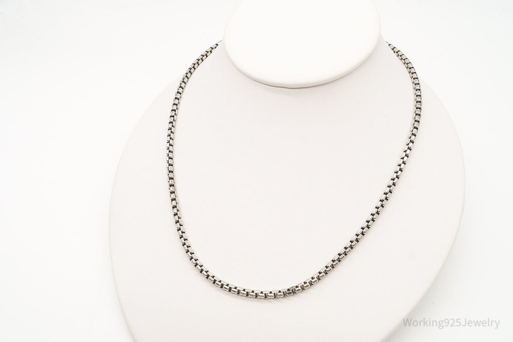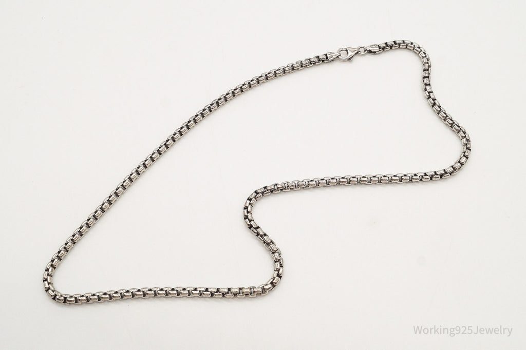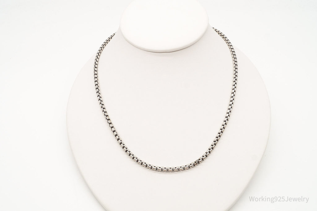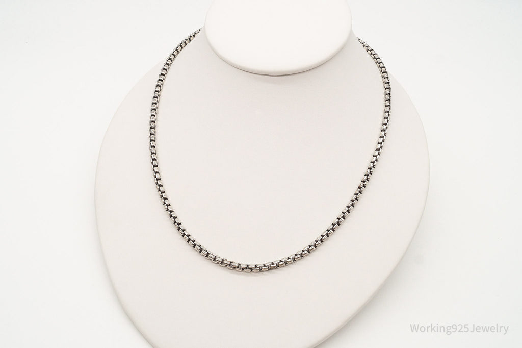 Vintage High Fashion Sterling Silver Puffy Box Chain Link Necklace