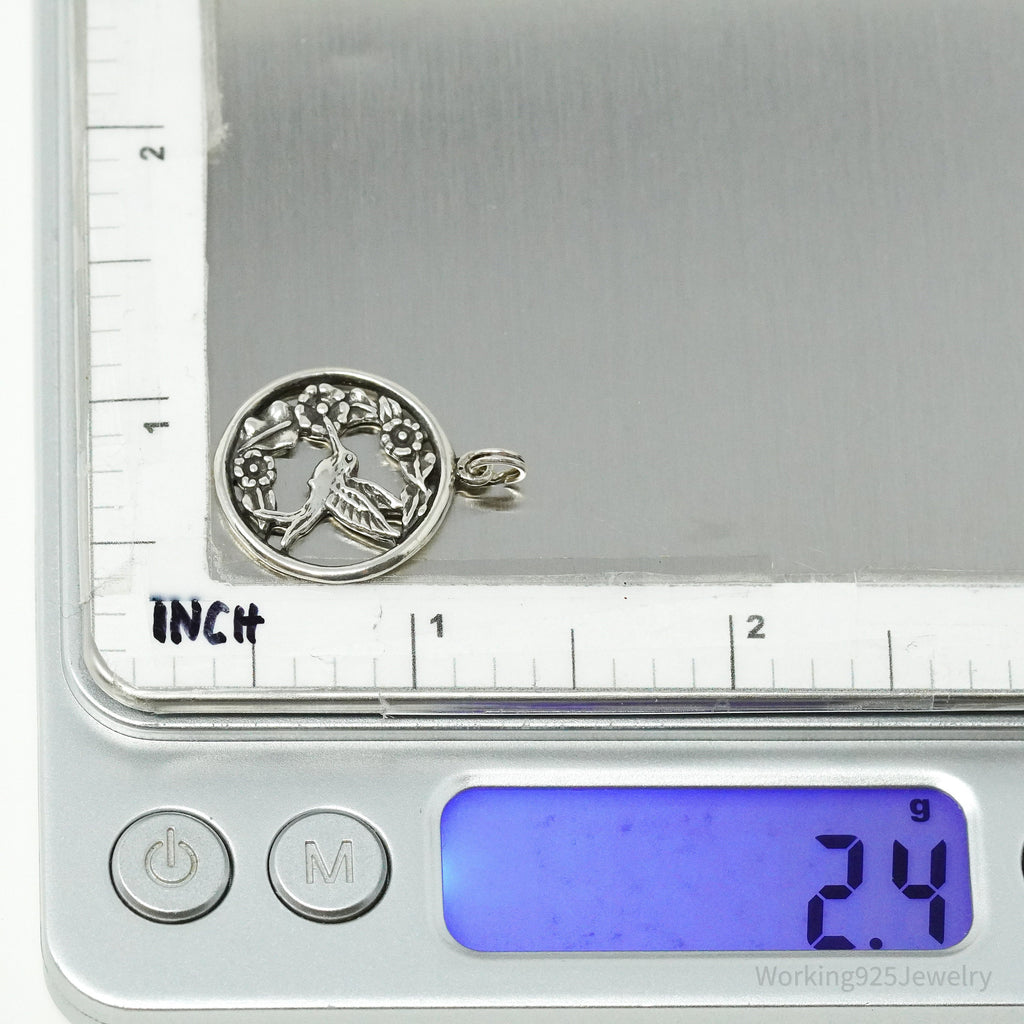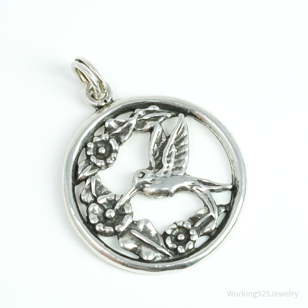 Vintage Hummingbird & Flowers Sterling Silver Charm Pendant