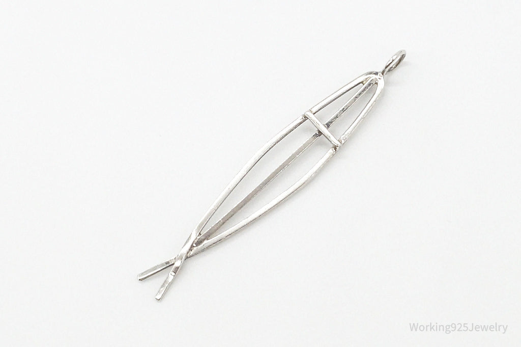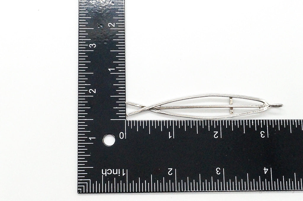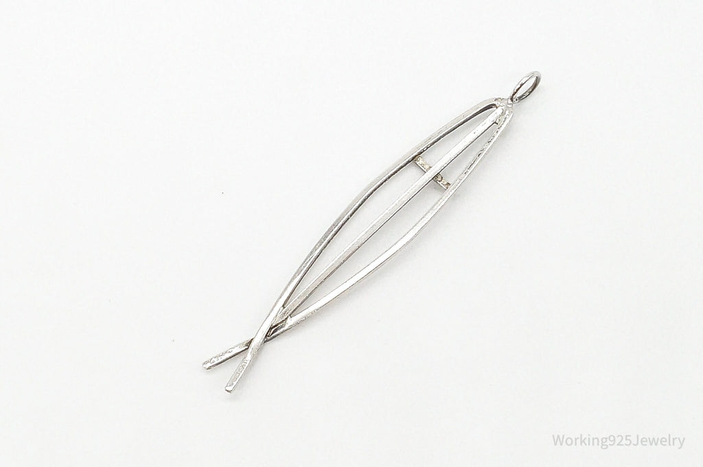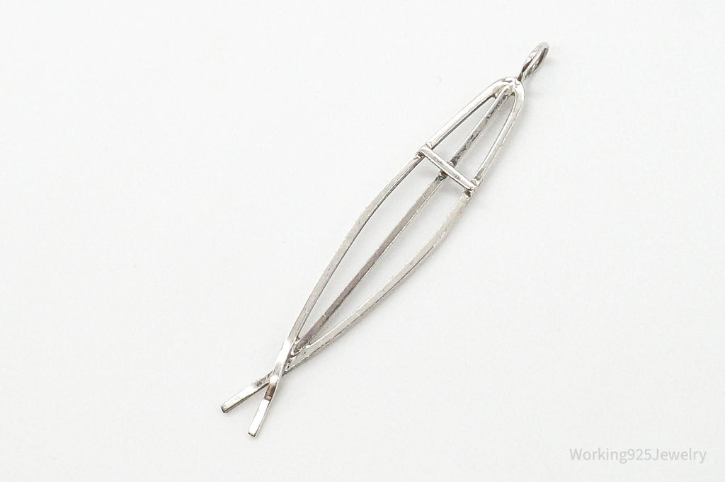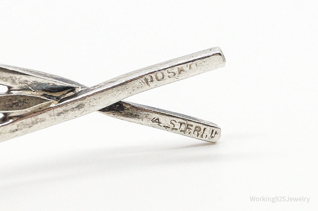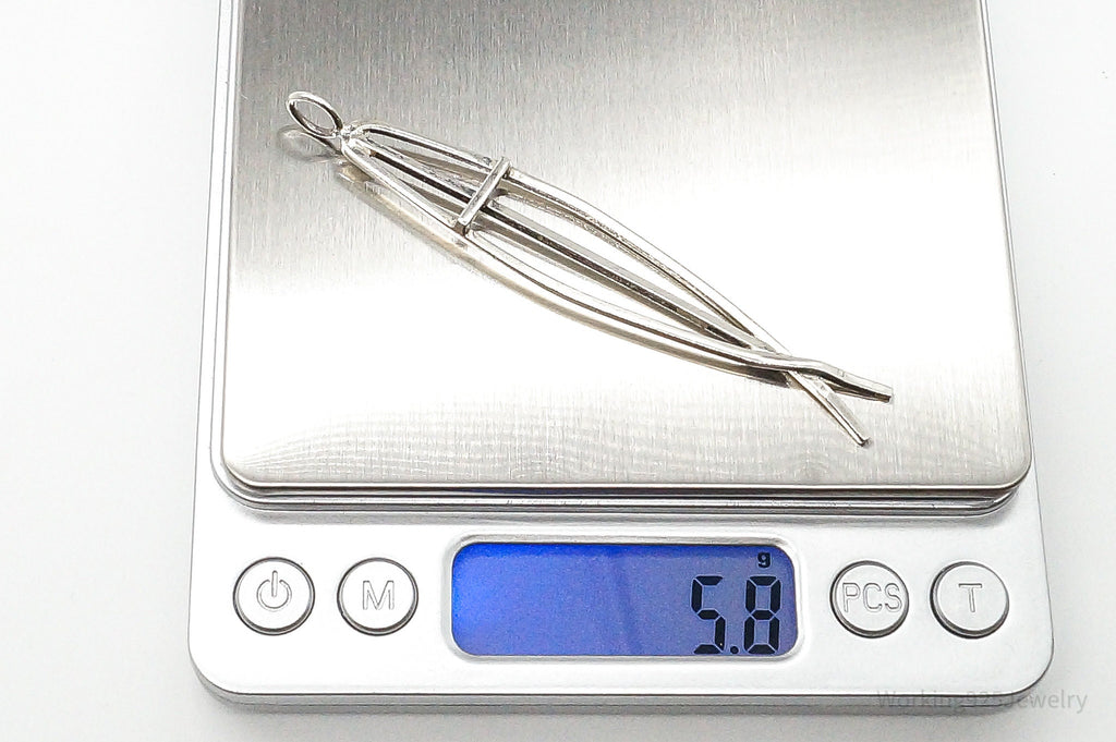 Vintage Ichthus Cross Fish Modernist Sterling Silver Necklace Pendant
