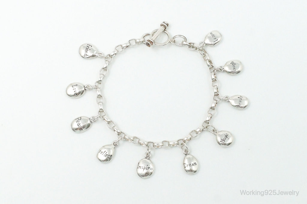 Vintage Inspiring Words Sterling Silver Charms Bracelet