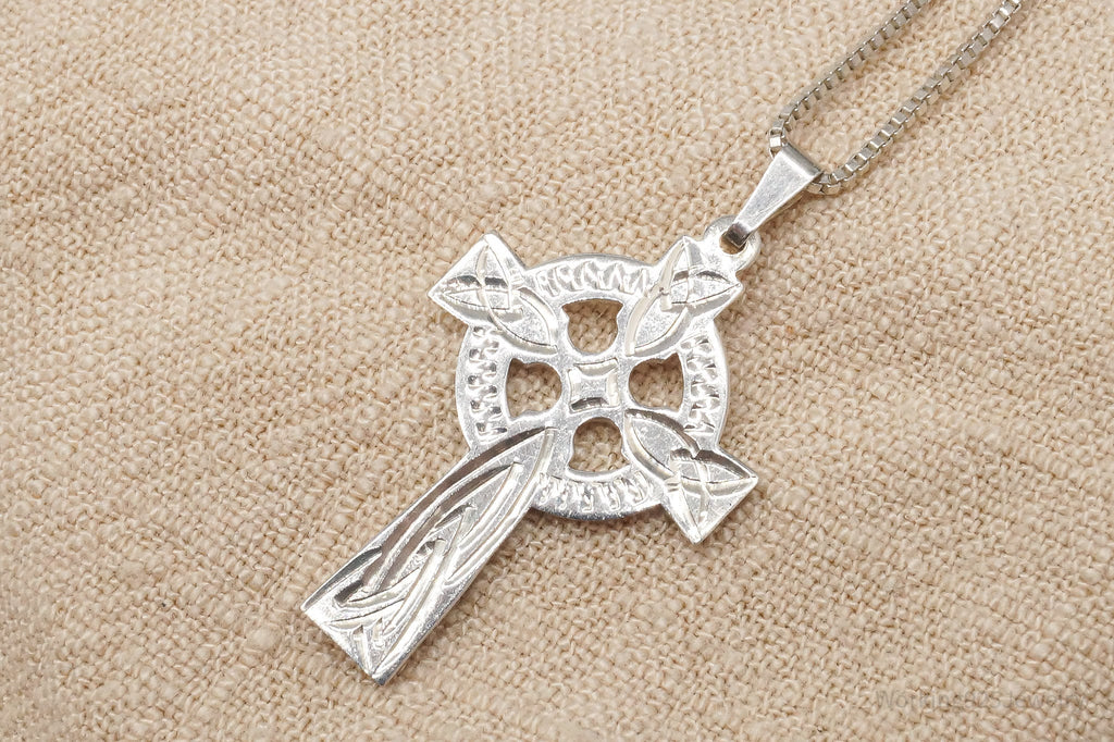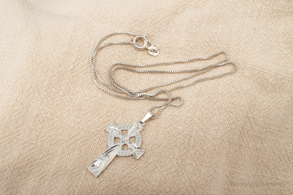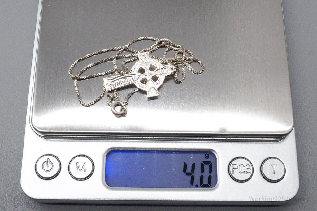 Vintage Irish Celtic Cross Sterling Silver Necklace 16"