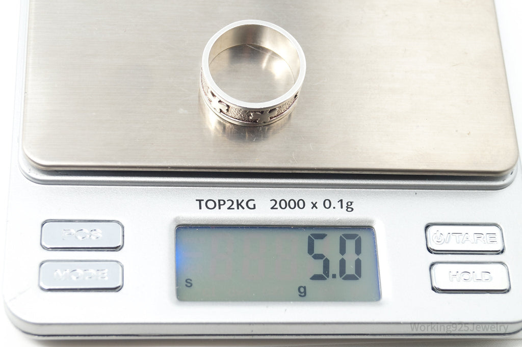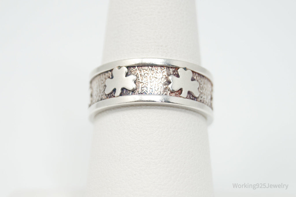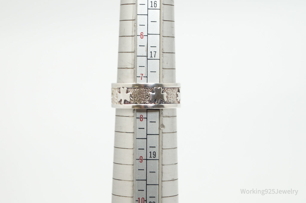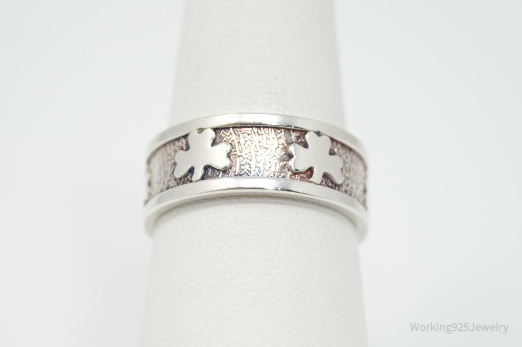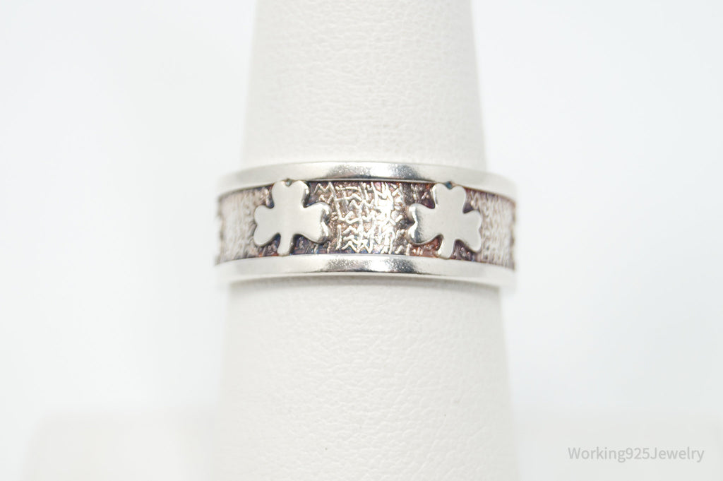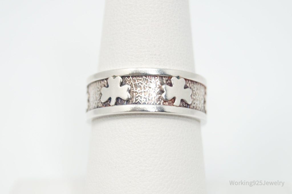 Vintage Irish Designer JMH Clover Sterling Silver Band Ring - Sz 7.75