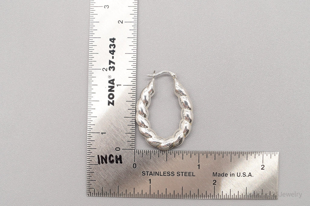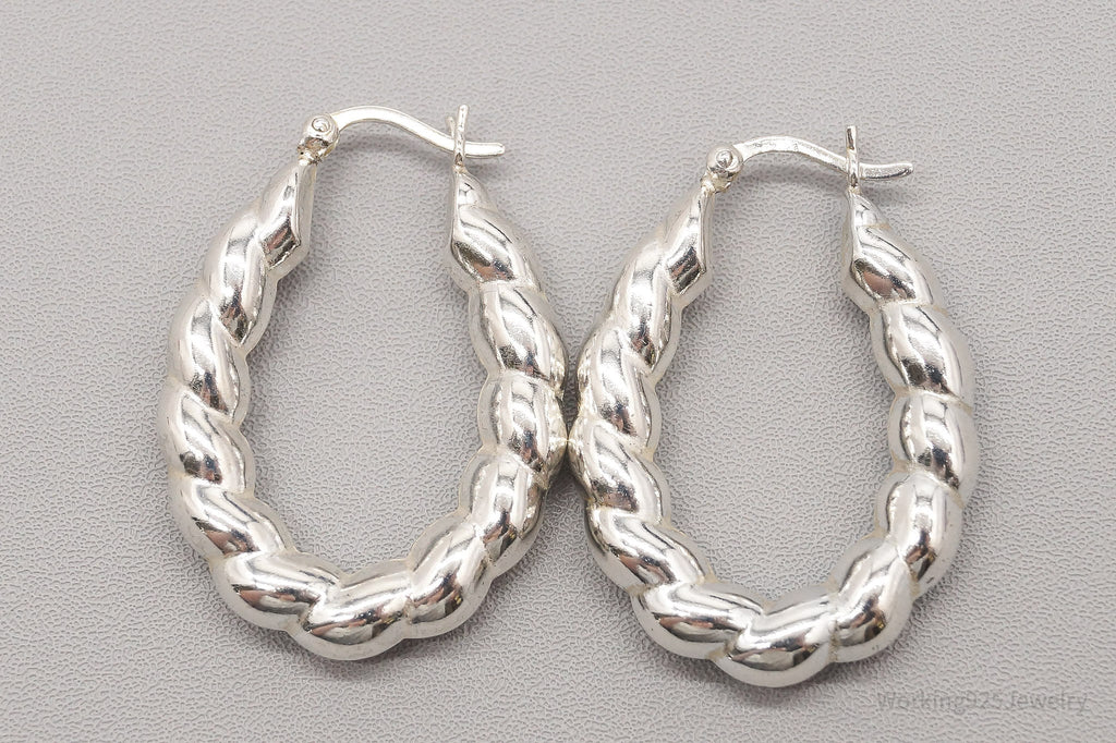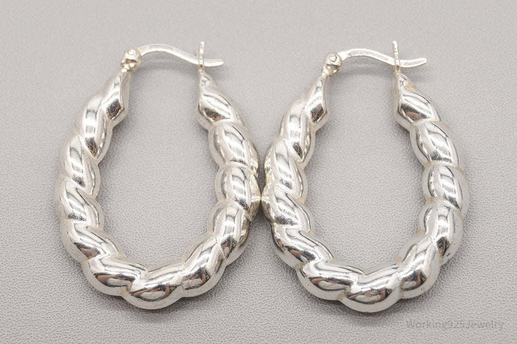Vintage Italian Puffy Twist Sterling Silver Hoop Earrings