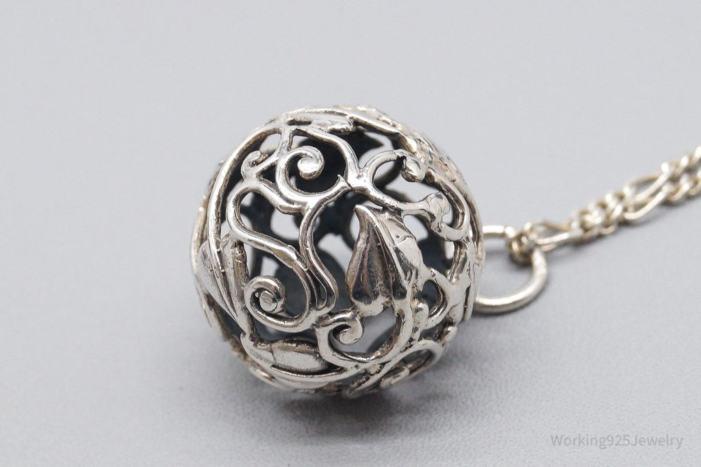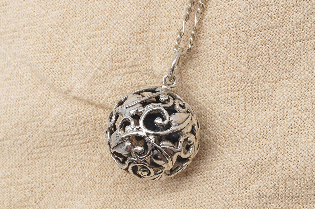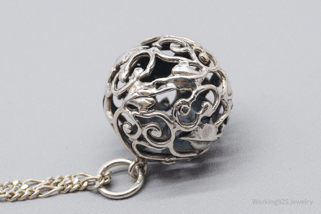 Vintage Ivy Wrapped Ball Sterling Silver Necklace 20"