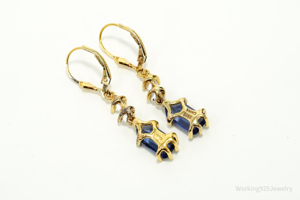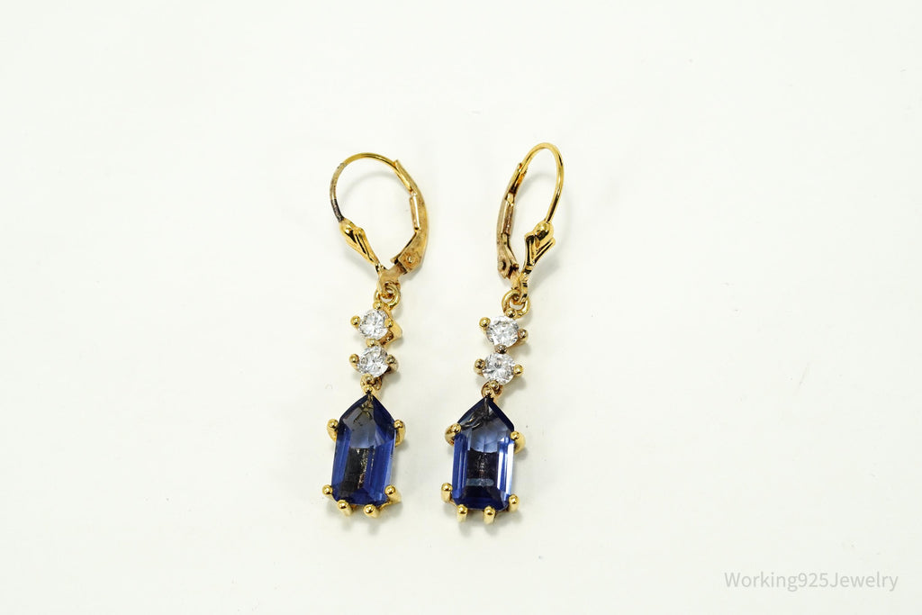 Vintage Lab Created Tanzanite & Cubic Zirconia Gold Vermeil Sterling Silver Earrings